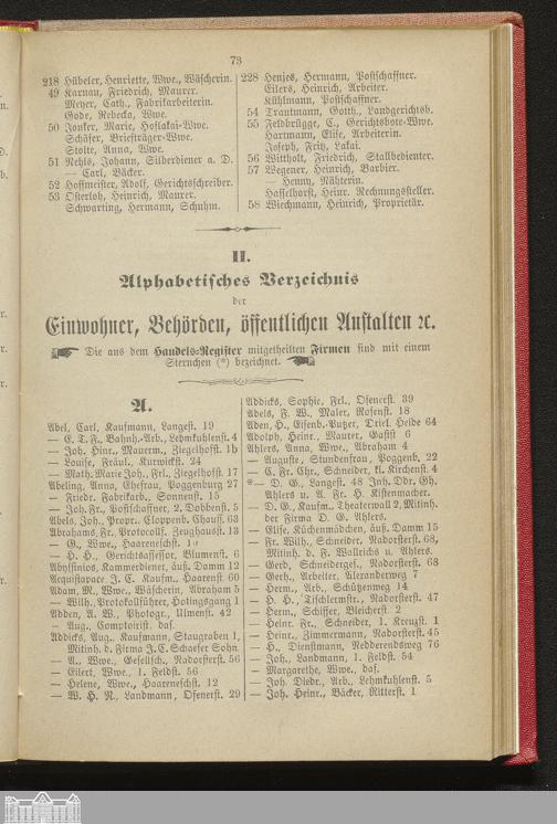 II. Alphabetisches Verzeichnis der Einwohner, Behörden, öffentlichen Anstalten etc.