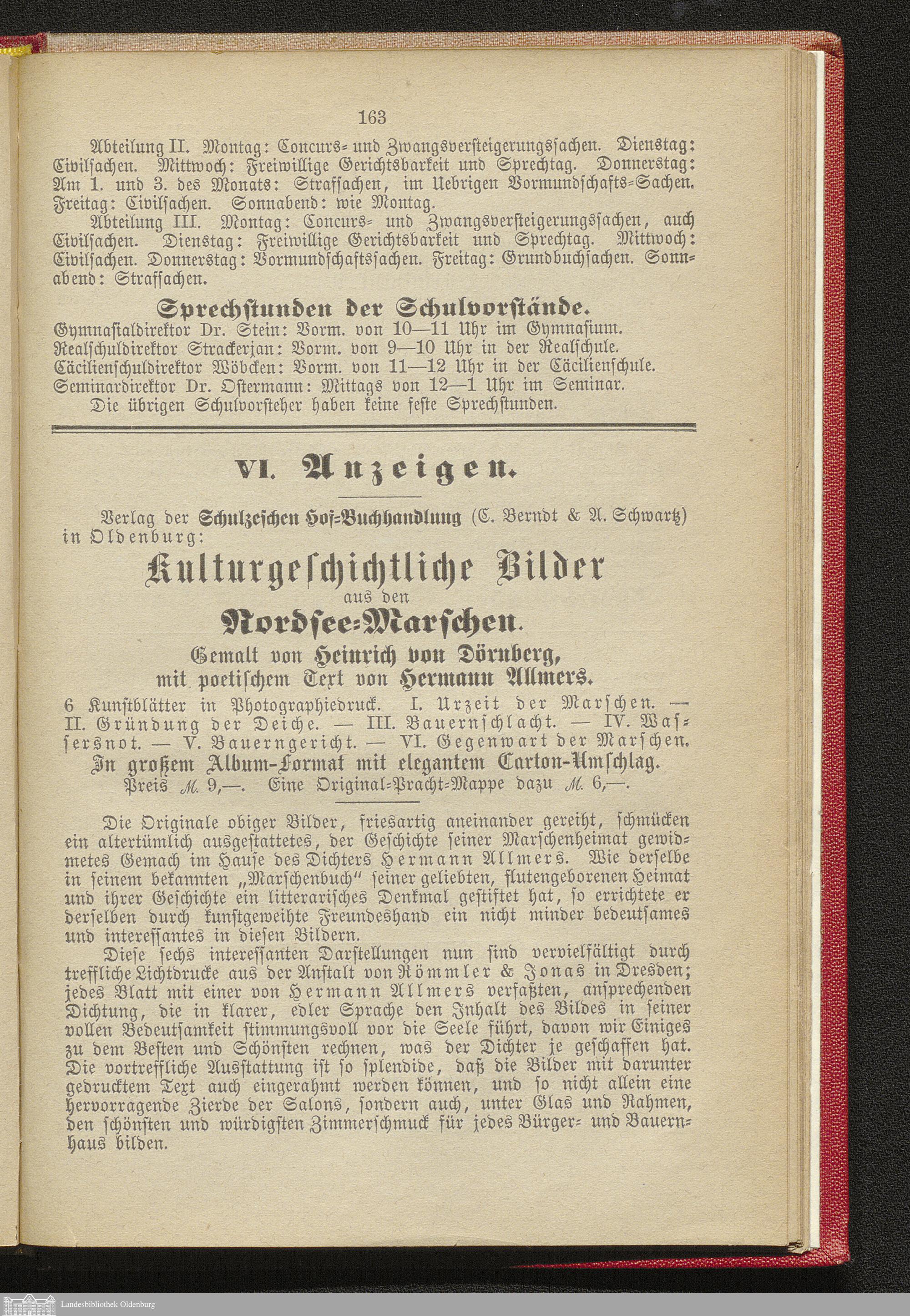 I. Alphabetisches Straßen-Verzeichnis der Residenzstadt Oldenburg, des Stadtgebietes und der Ortschaft Osternburg mit Angabe ihrer Bewohner, Behörden, öffentlichen Anstalten, Bau-Plätze etc.