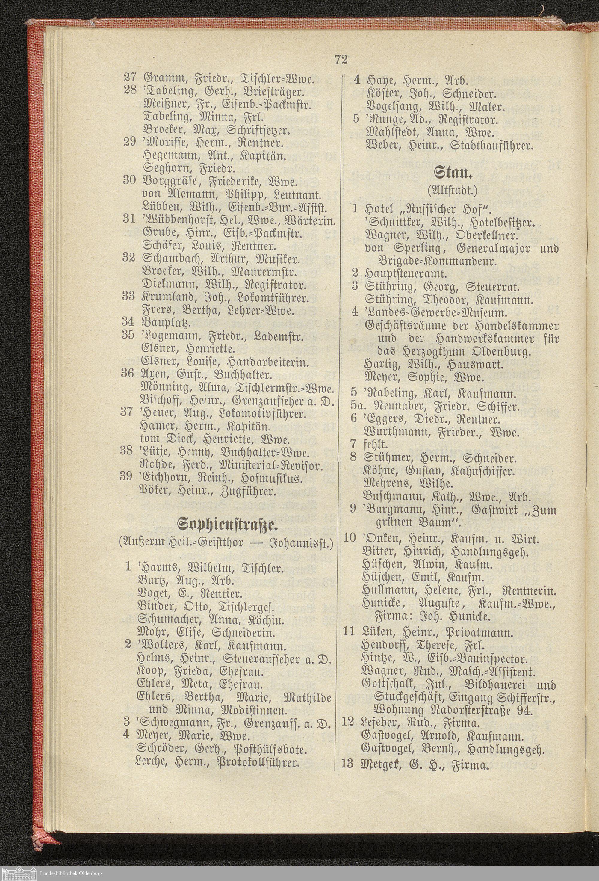 I. Alphabetisches Straßen-Verzeichnis der Residenzstadt Oldenburg, des Stadtgebietes Oldenburg, der Ortschaft Osternburg und eines Teils der Gemeinden Eversten und Ohmstede mit Angabe ihrer Bewohner, Behörden, öffentlichen Anstalten etc.