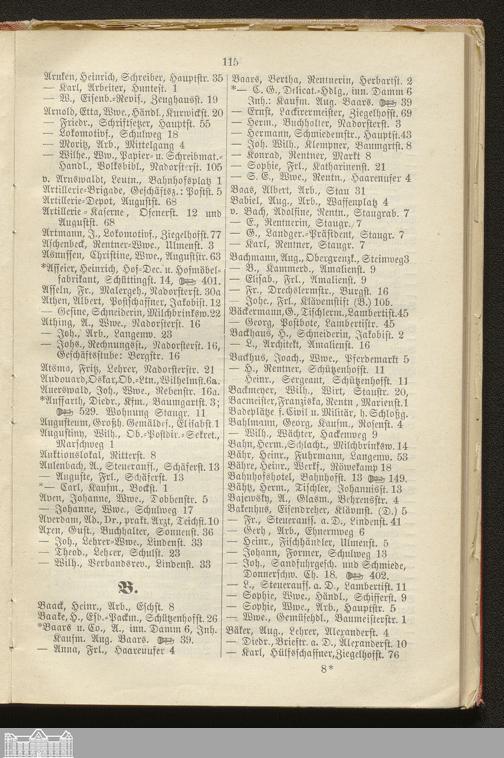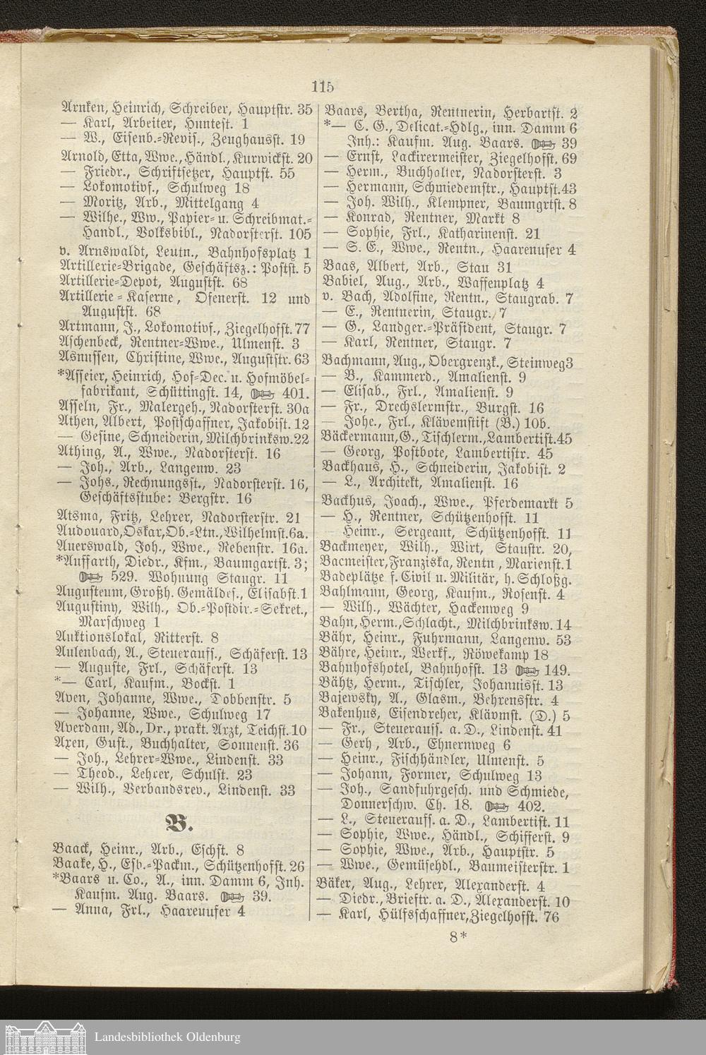 I. Alphabetisches Straßen-Verzeichnis der Residenzstadt Oldenburg, des Stadtgebietes Oldenburg, der Ortschaft Osternburg und eines Teils der Gemeinden Eversten und Ohmstede mit Angabe ihrer Bewohner, Behörden, öffentlichen Anstalten etc.