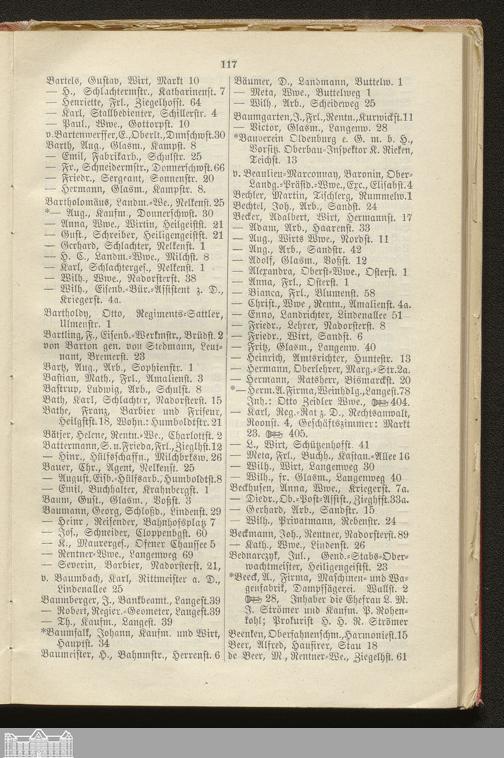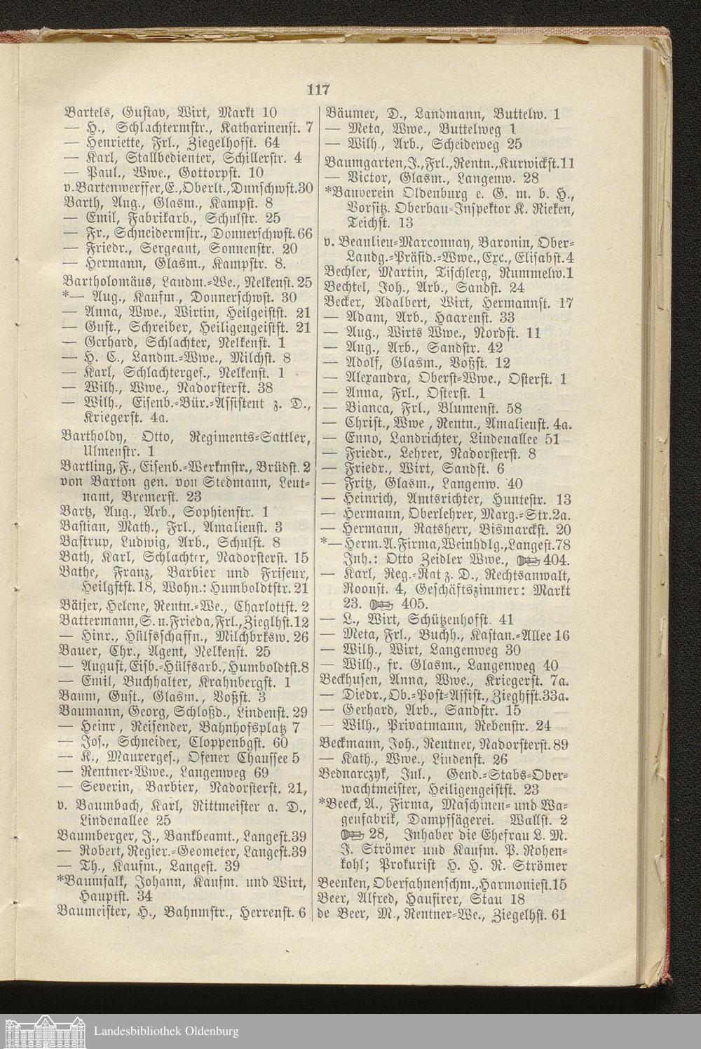 I. Alphabetisches Straßen-Verzeichnis der Residenzstadt Oldenburg, des Stadtgebietes Oldenburg, der Ortschaft Osternburg und eines Teils der Gemeinden Eversten und Ohmstede mit Angabe ihrer Bewohner, Behörden, öffentlichen Anstalten etc.