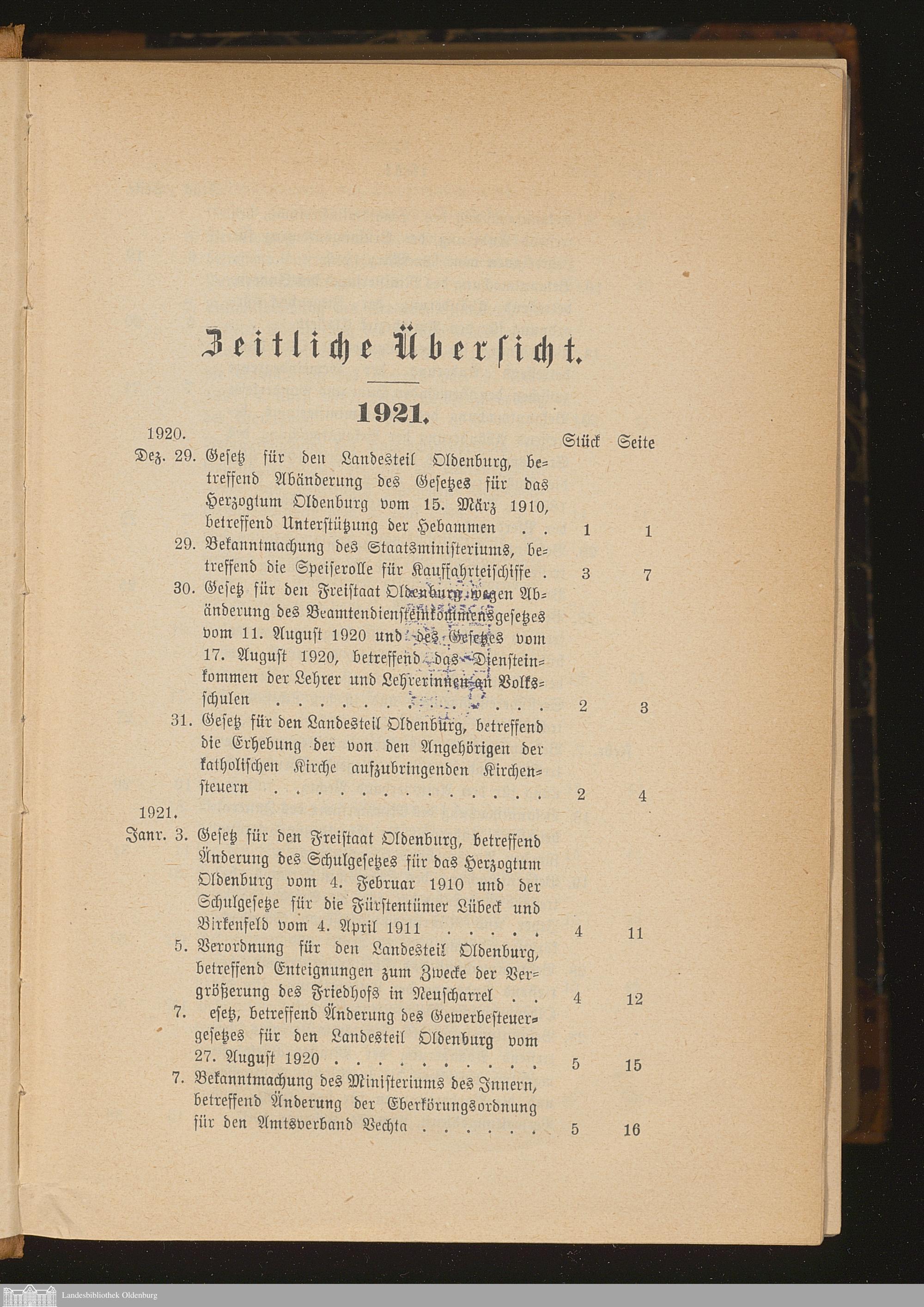 Gesetzblatt für den Freistaat Oldenburg, Landesteil Oldenburg