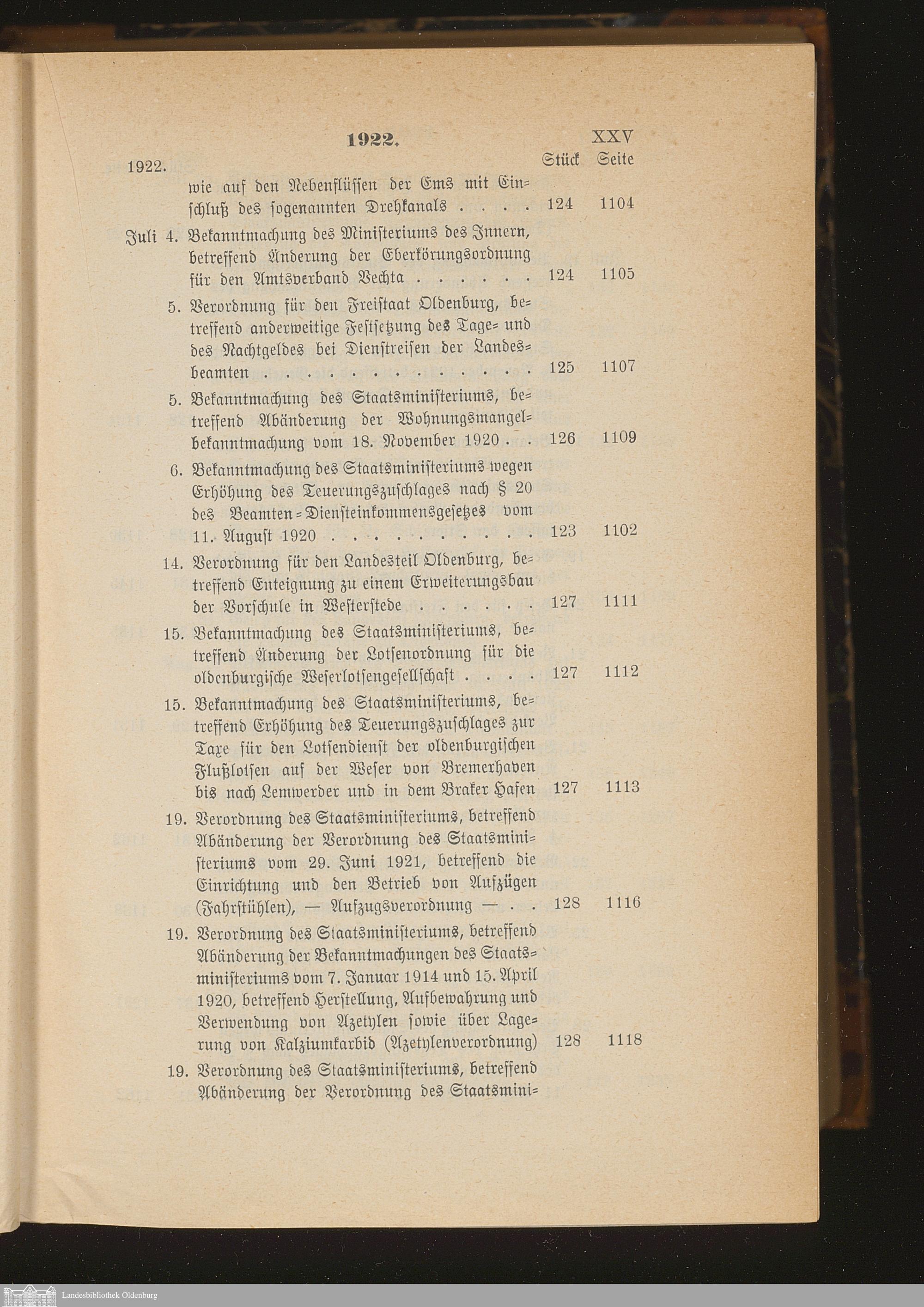 Gesetzblatt für den Freistaat Oldenburg, Landesteil Oldenburg