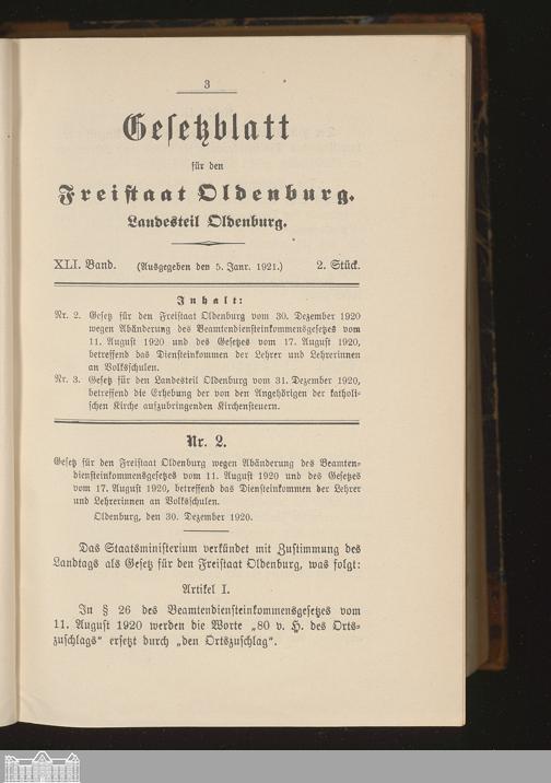 Gesetzblatt für den Freistaat Oldenburg, Landesteil Oldenburg