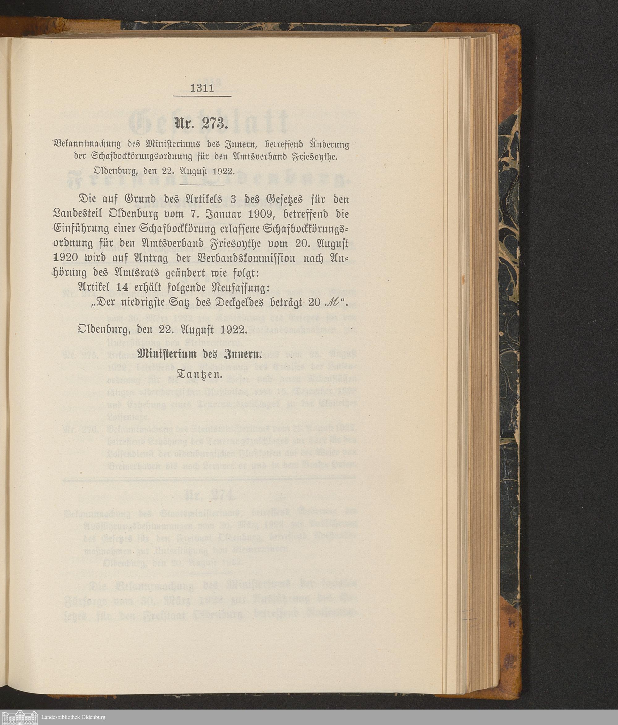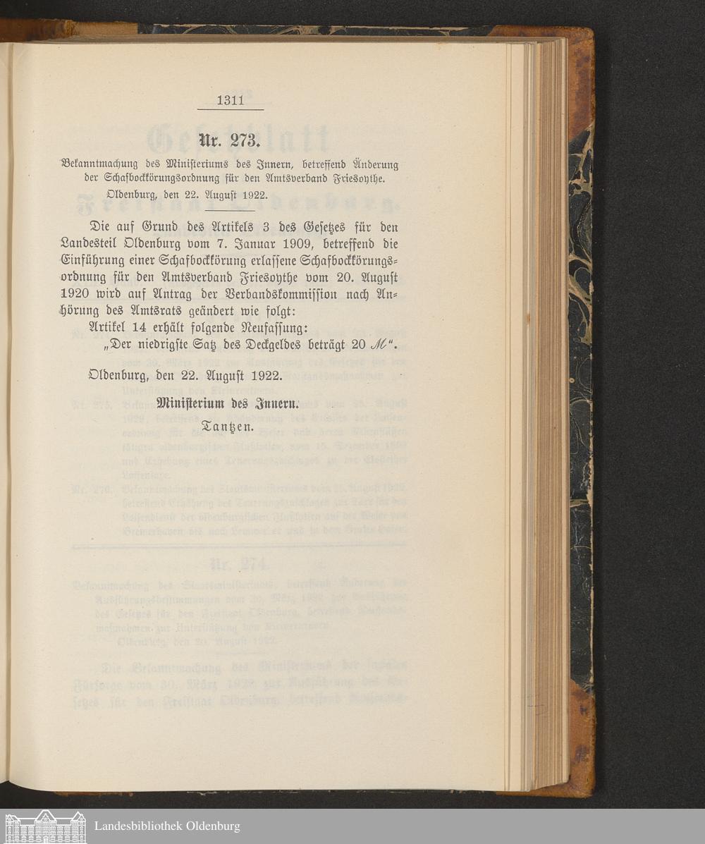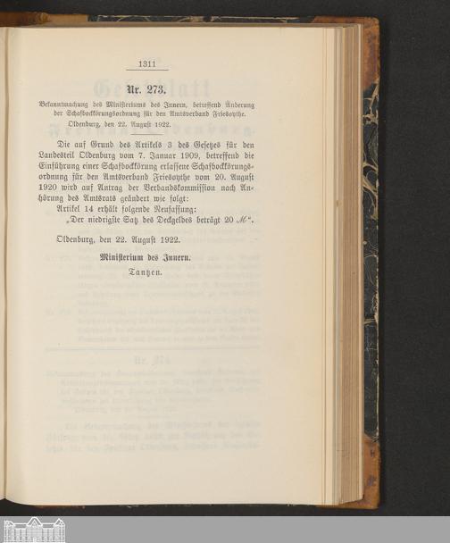 Gesetzblatt für den Freistaat Oldenburg, Landesteil Oldenburg