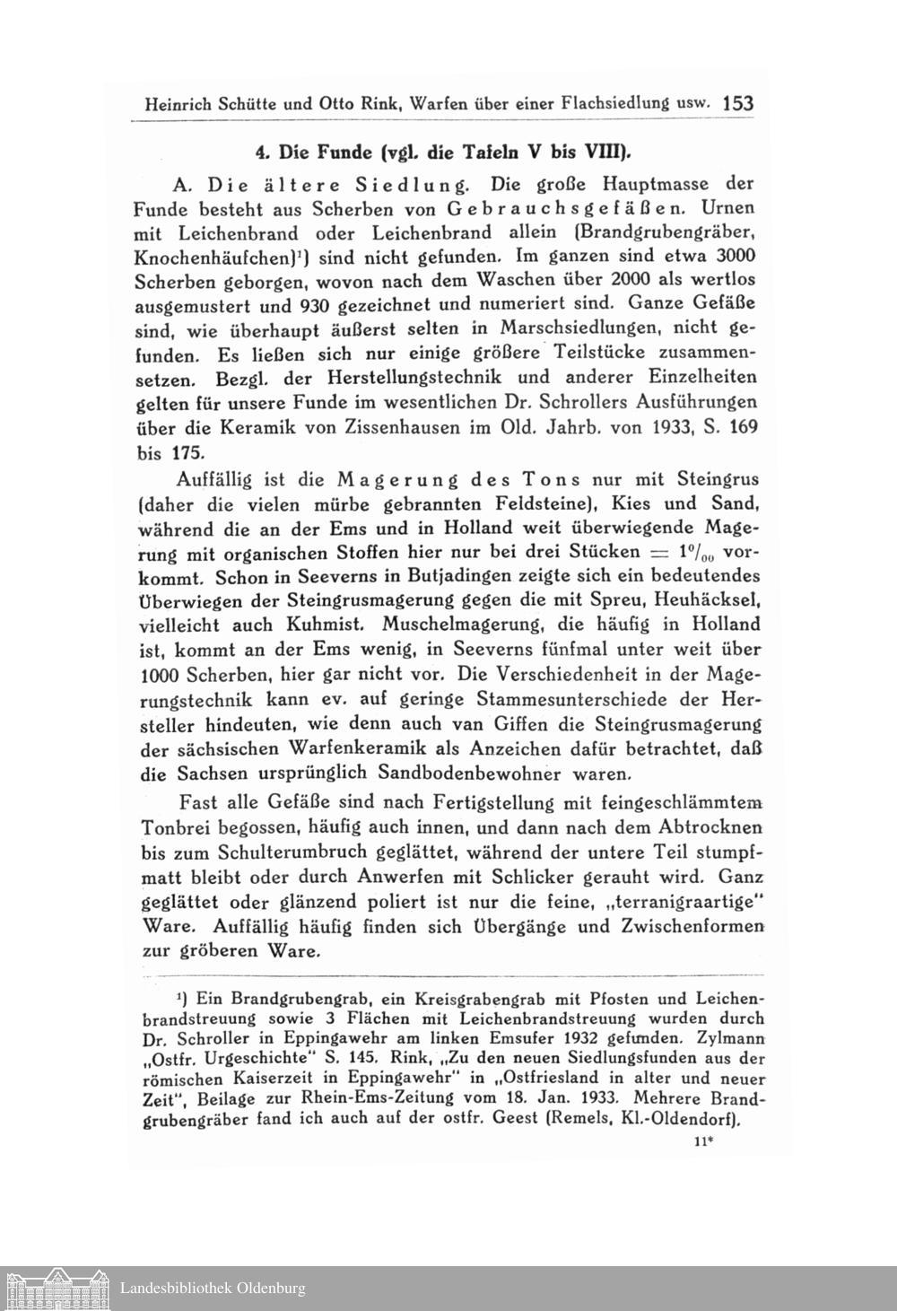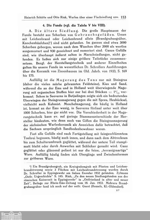 Warfen über einer Flachsiedlung in Golzwarderwurp. Ein Beitrag zur Geologie der Wesermarsch und zur Stammeskunde der Chauken. Von Heinrich Schütte und Otto Rink.