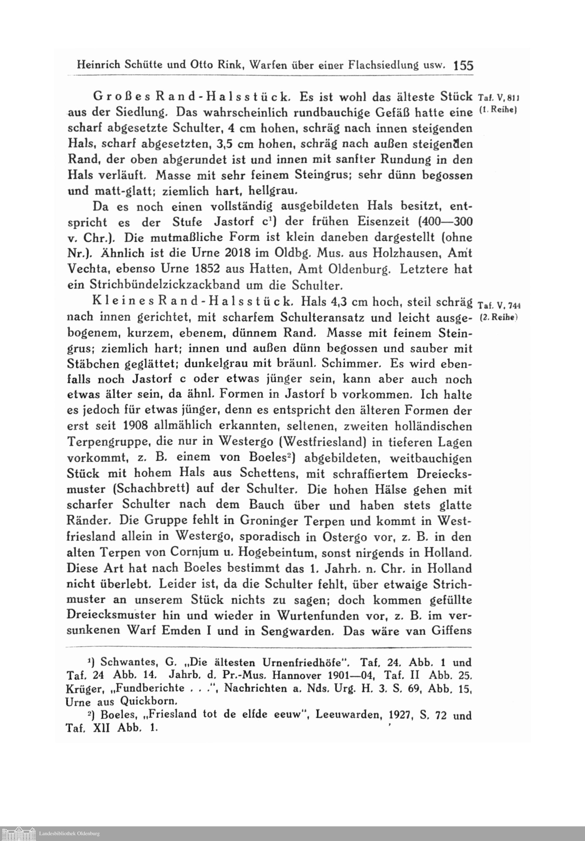 Warfen über einer Flachsiedlung in Golzwarderwurp. Ein Beitrag zur Geologie der Wesermarsch und zur Stammeskunde der Chauken. Von Heinrich Schütte und Otto Rink.