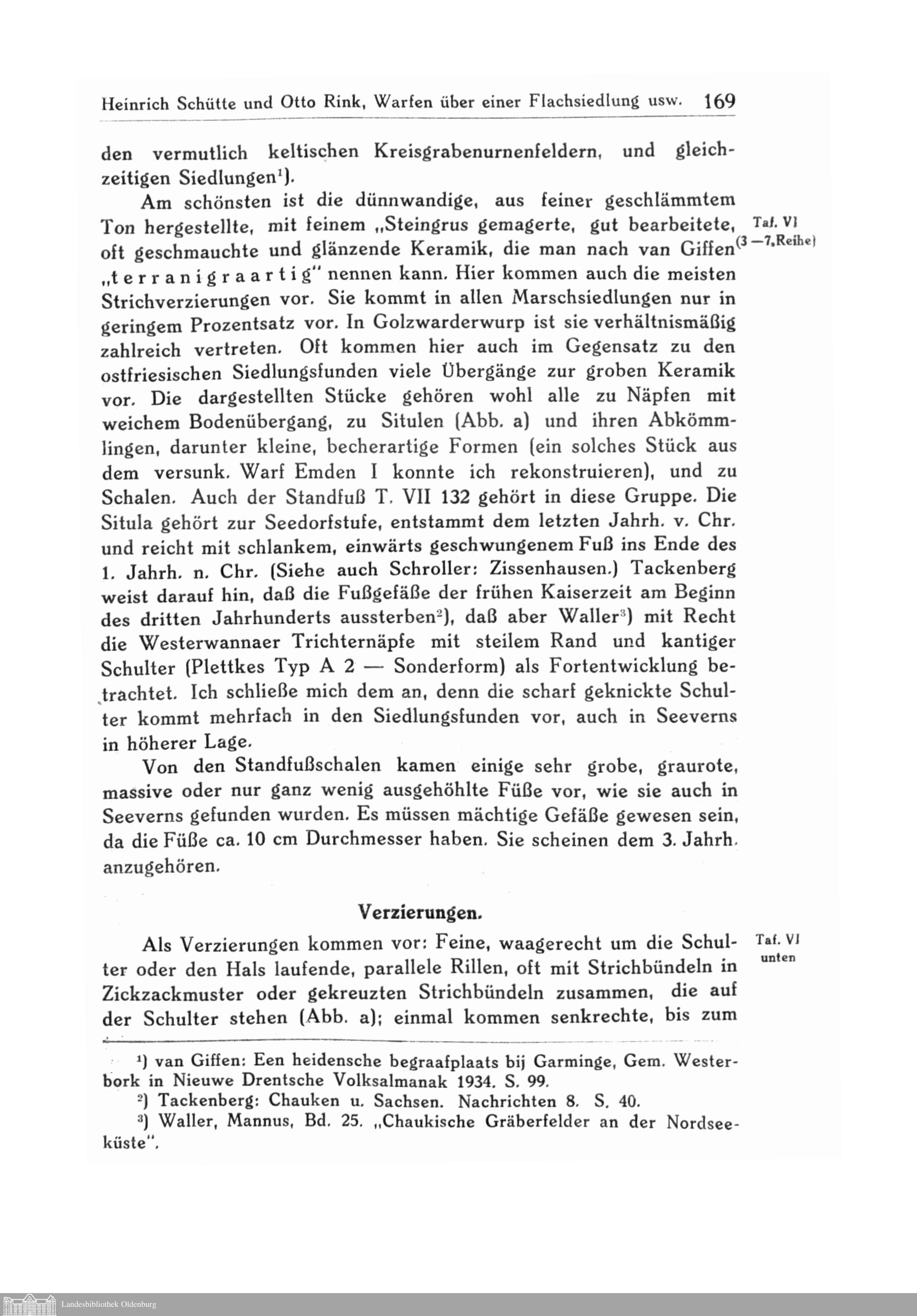 Warfen über einer Flachsiedlung in Golzwarderwurp. Ein Beitrag zur Geologie der Wesermarsch und zur Stammeskunde der Chauken. Von Heinrich Schütte und Otto Rink.