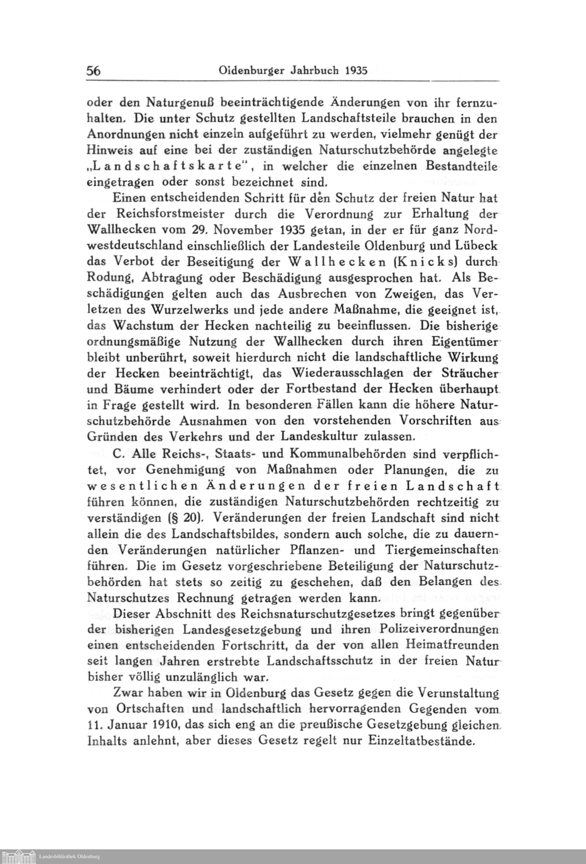 Naturschutz und Denkmalschutz. Nach der Gesetzgebung des Reiches und des Landes Oldenburg....