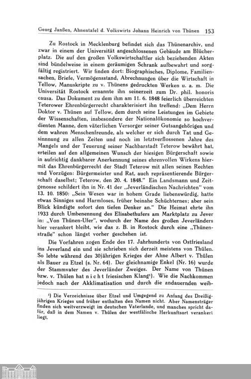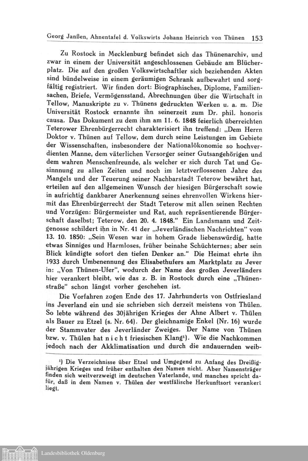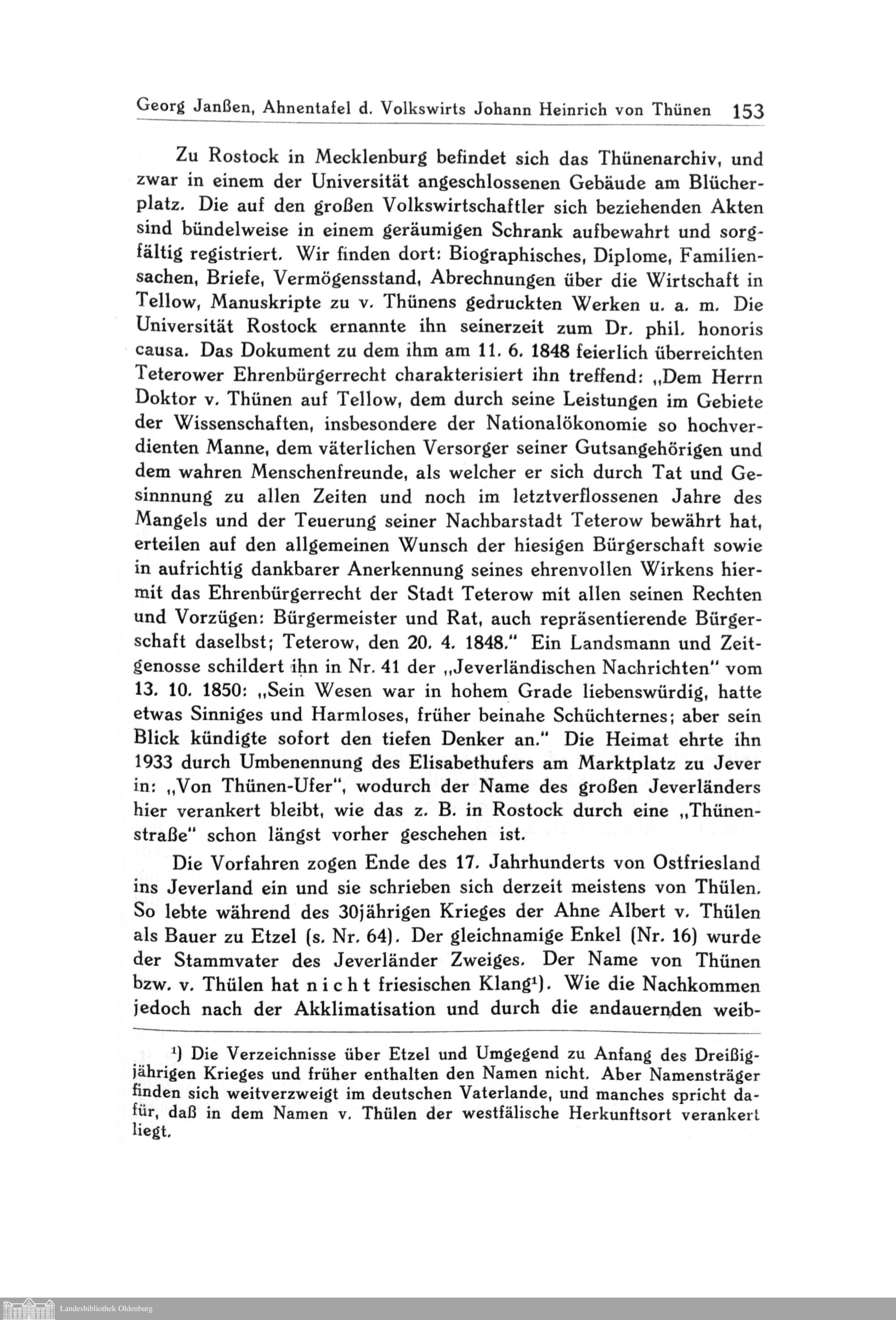 Ahnentafel des Volkswirts Johann Heinrich von Thünen. Von Georg Janßen-Sillenstede.