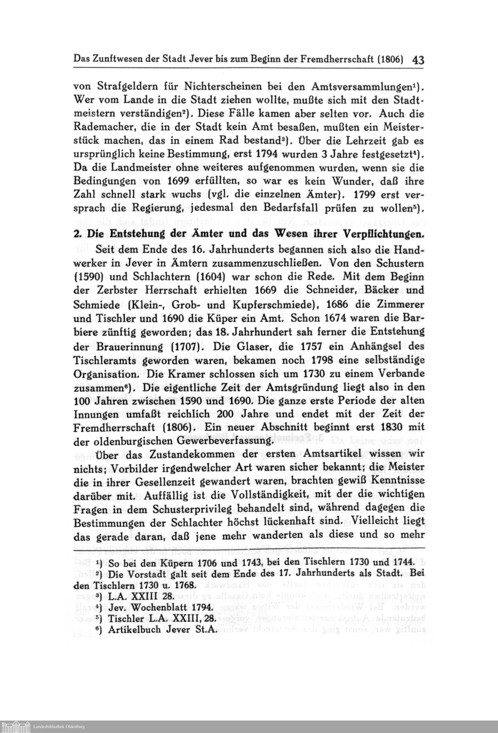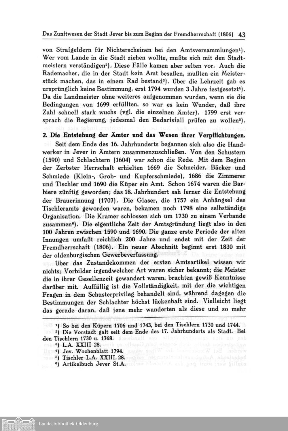 Das Zunftwesen der Stadt Jever bis zum Beginn der Fremdherrschaft (1806). Von Karl Hoyer.