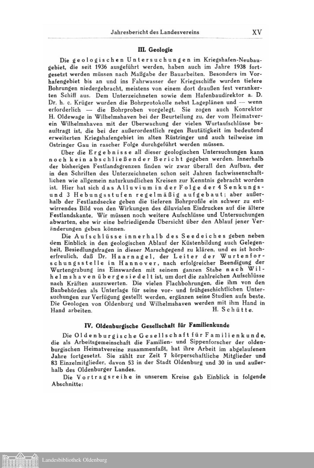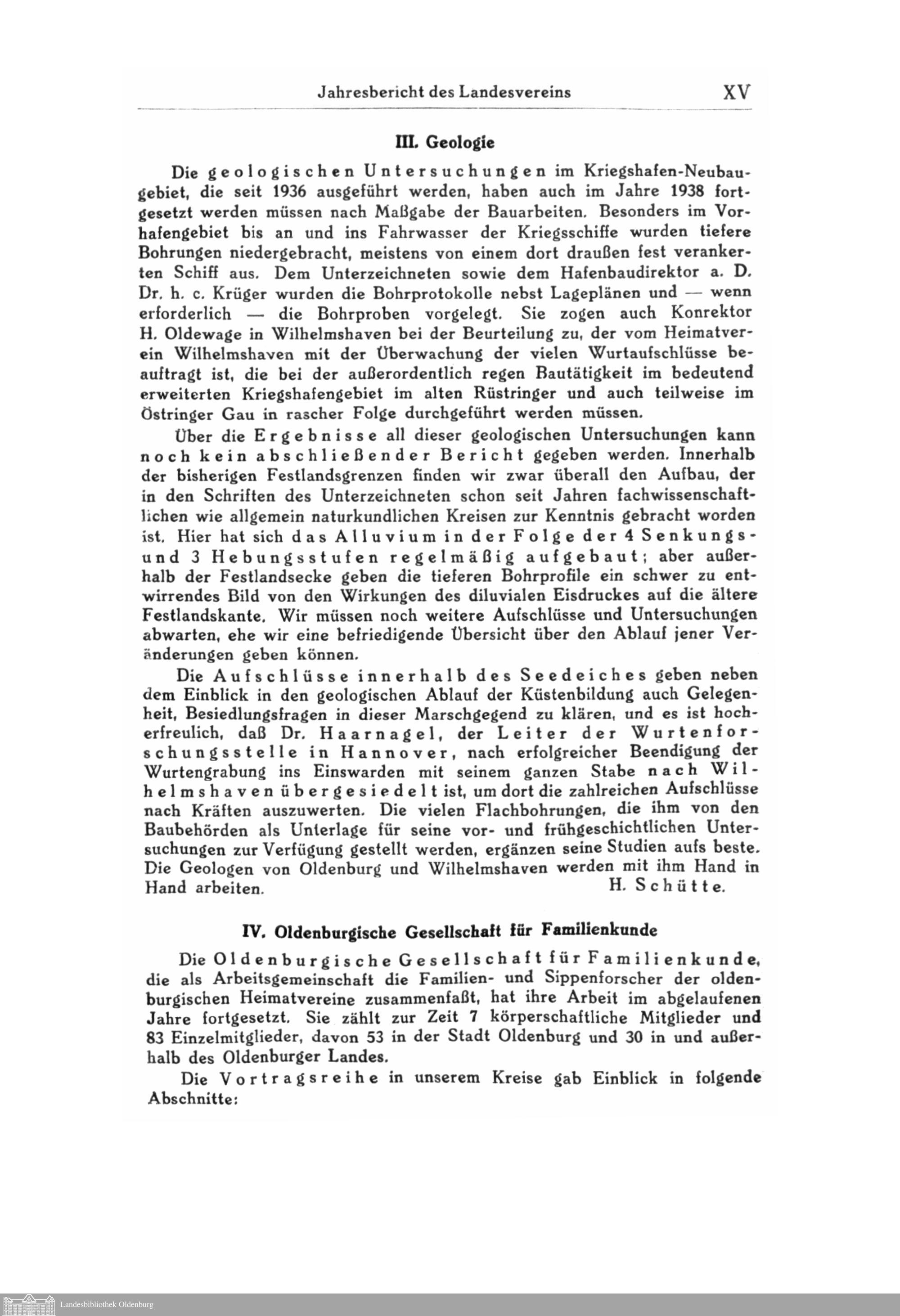 Landesverein Oldenburg für Heimatkunde und Heimatschutz Jahresbericht 1938