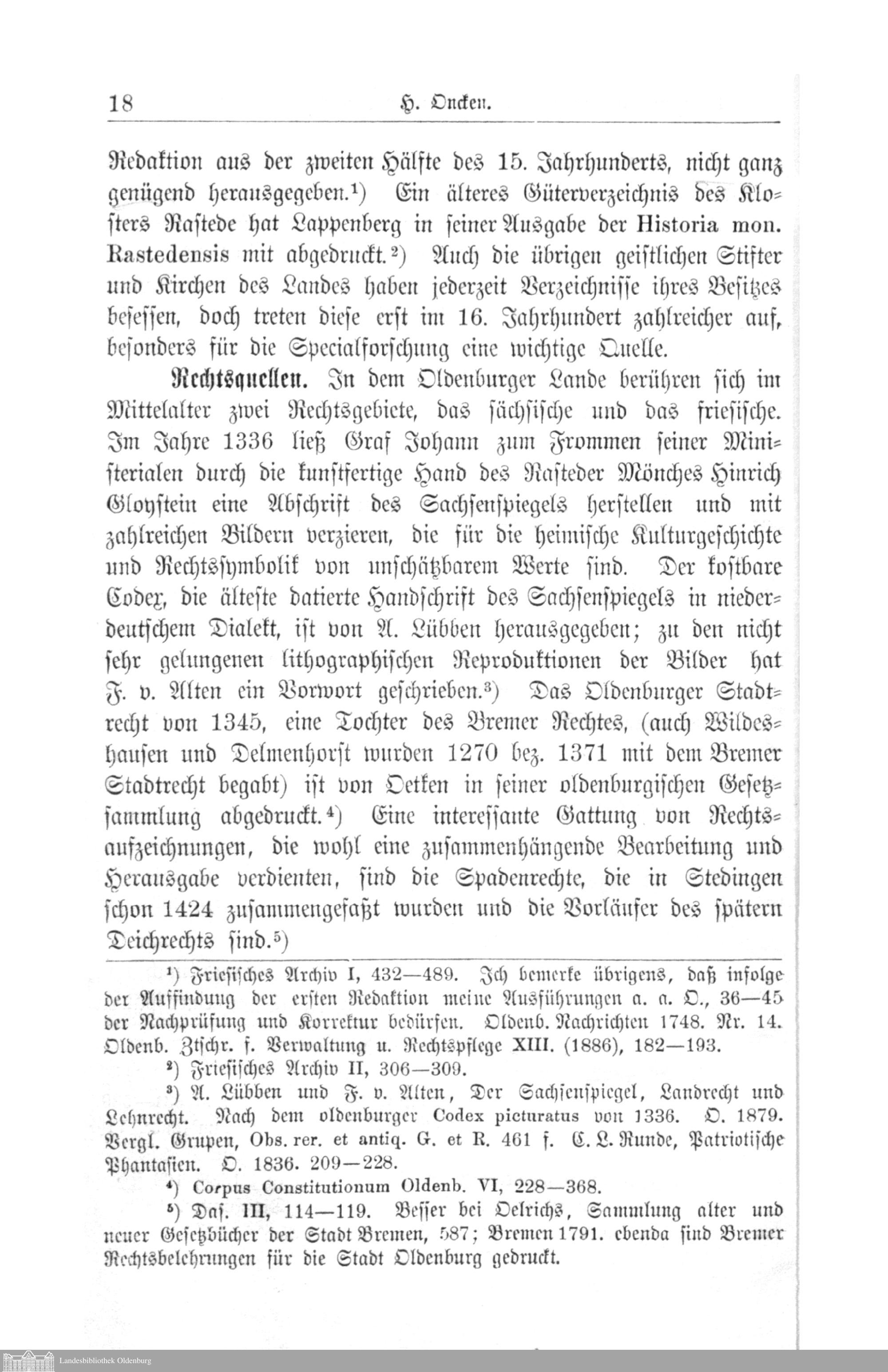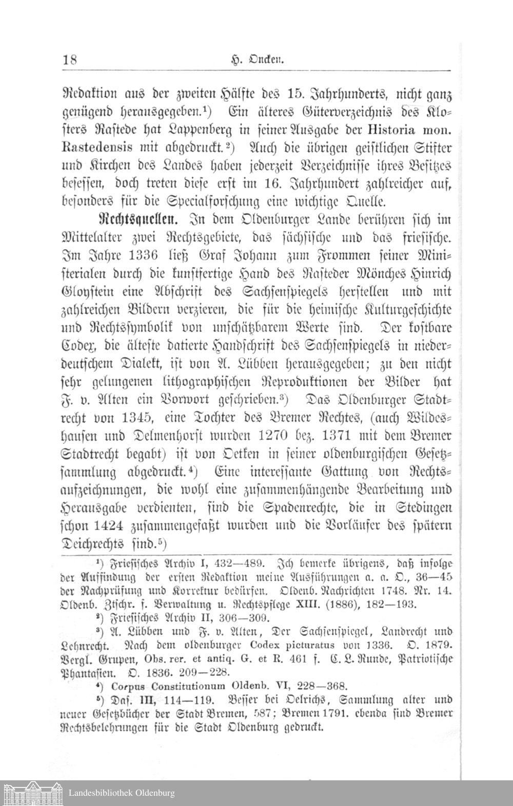 II. Umschau auf dem Gebiete oldenburgischer Geschichtsforschung. Von H. Oncken.