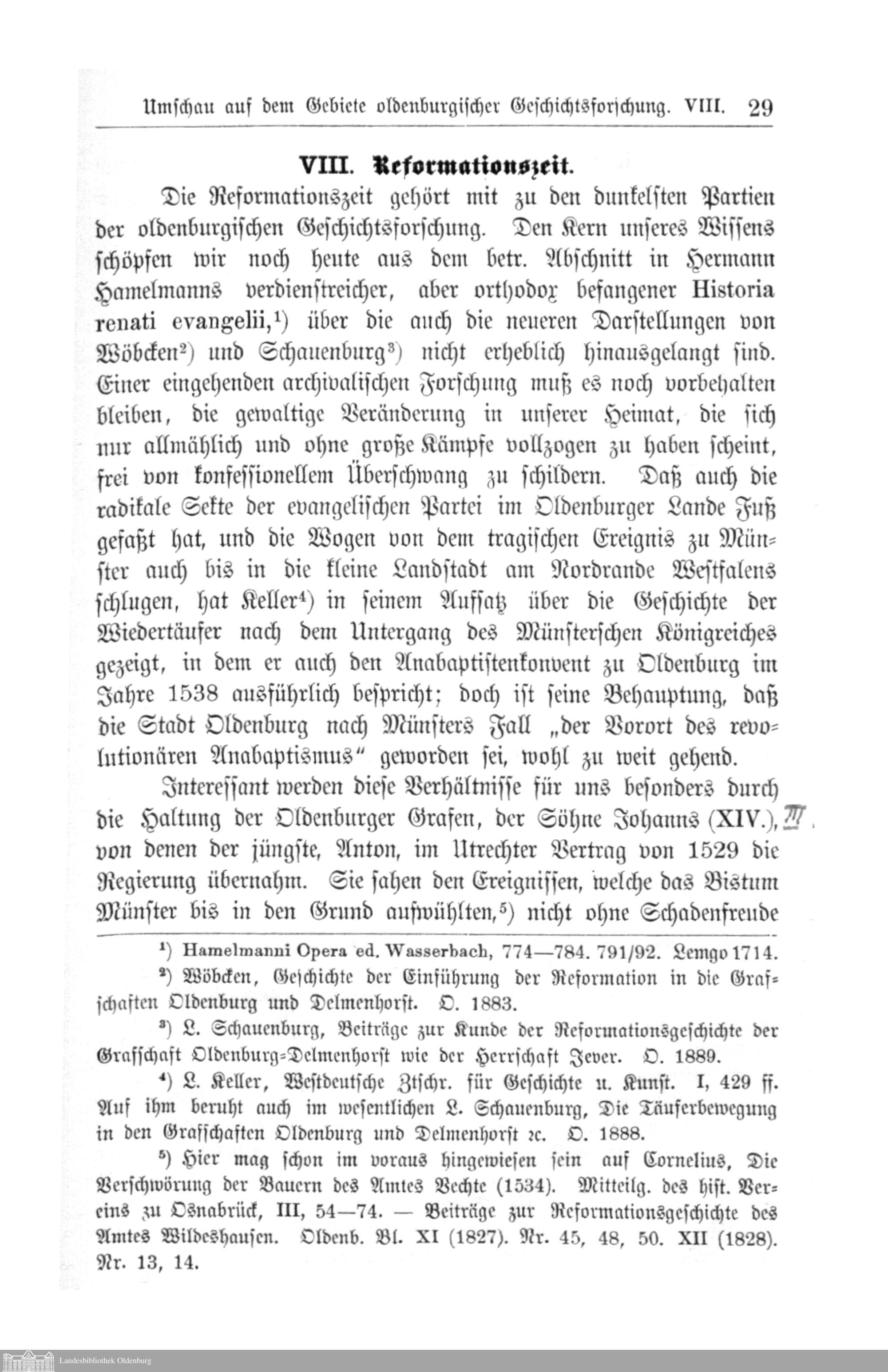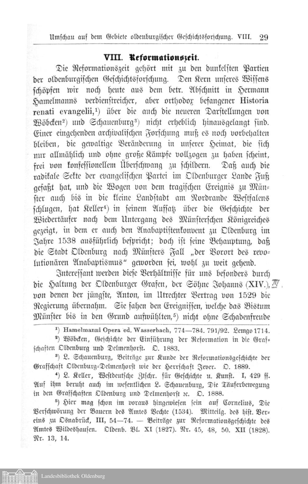 II. Umschau auf dem Gebiete oldenburgischer Geschichtsforschung. Von H. Oncken.