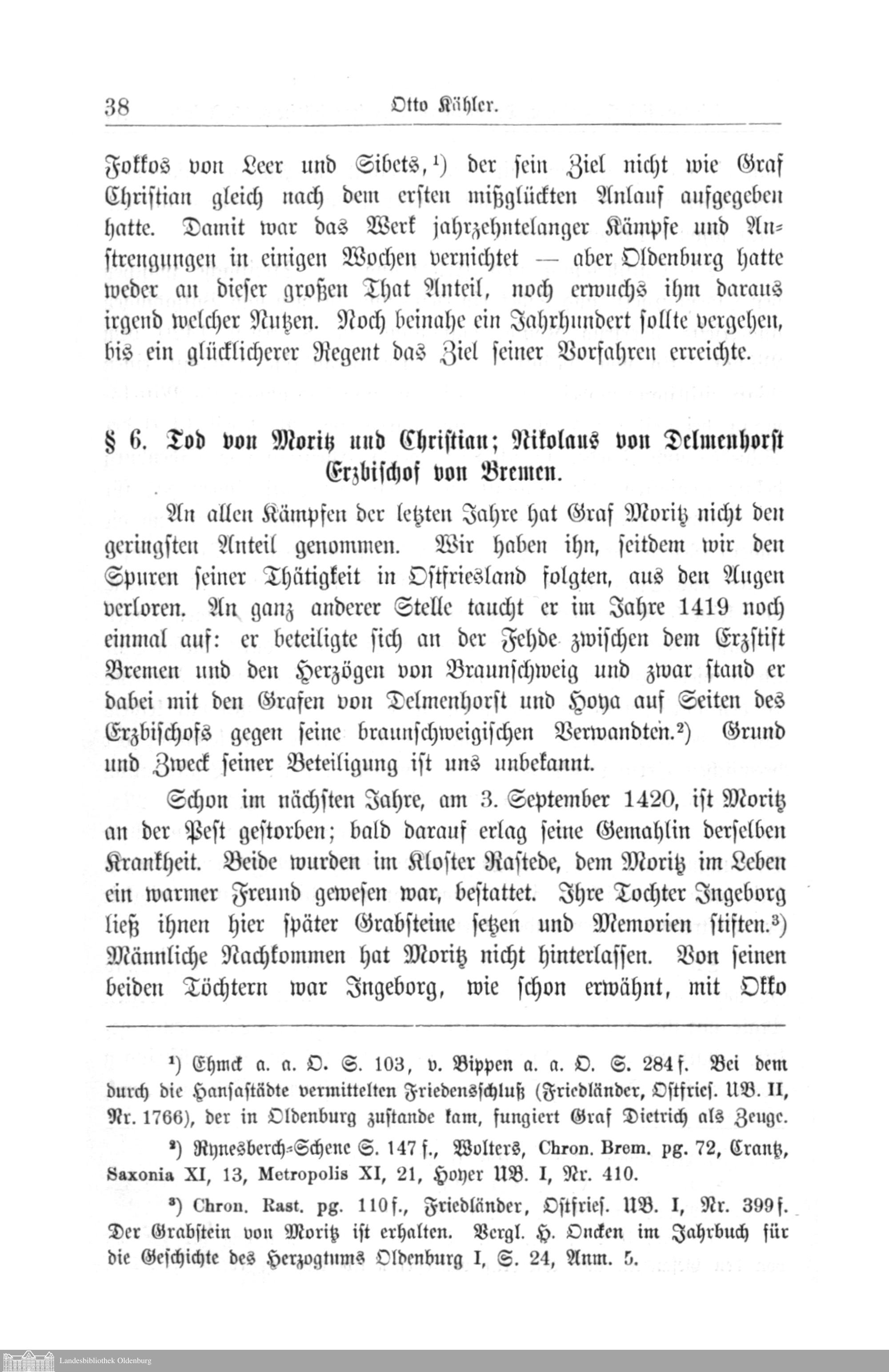 § 6. Tod von Moritz und Christian; Nikolaus von Delmenhorst Erzbischof von Breme...