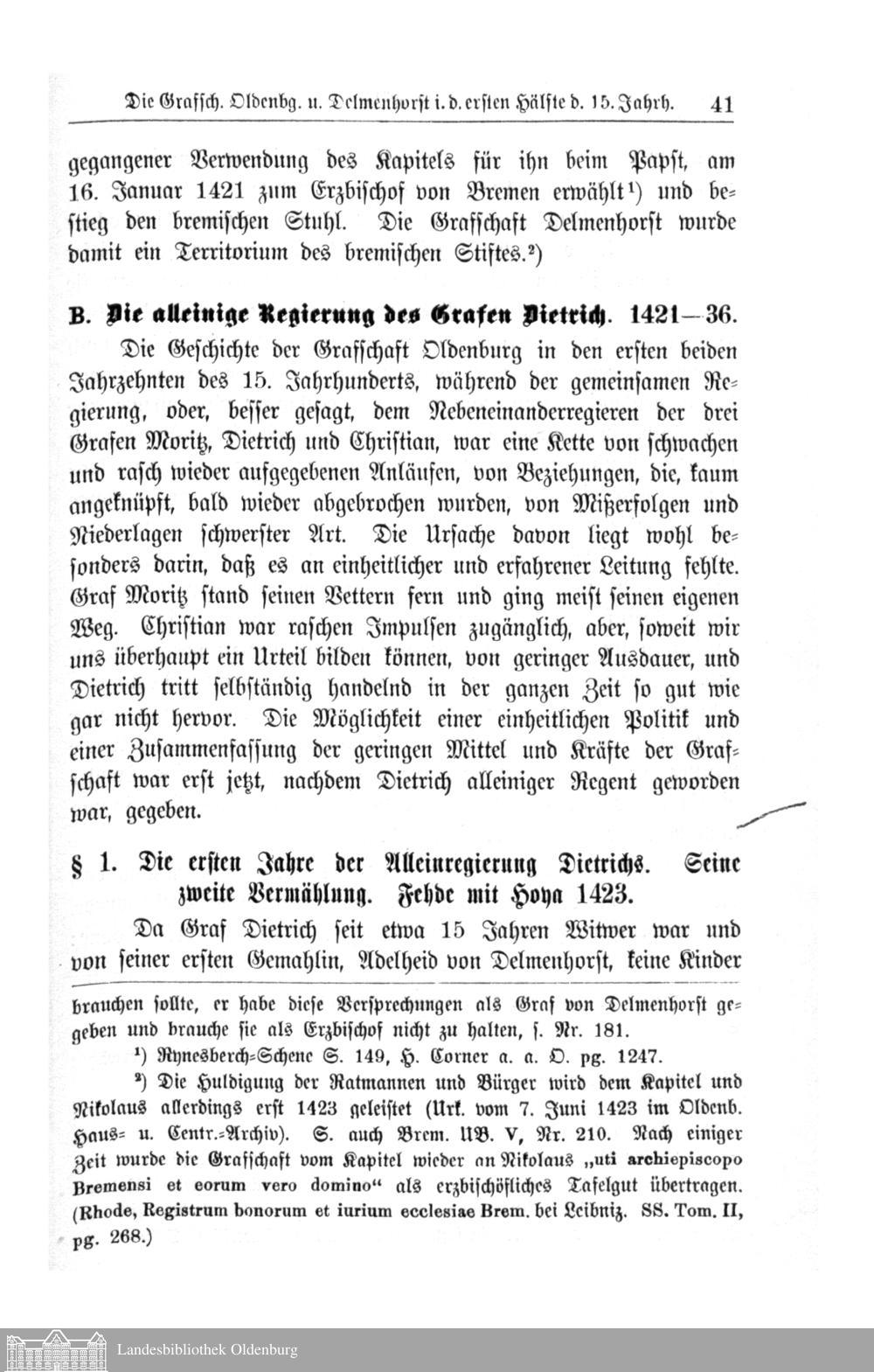 I. Die Grafschaften Oldenburg und Delmenhorst in ersten Hälfte des 15. Jahrhunderts....