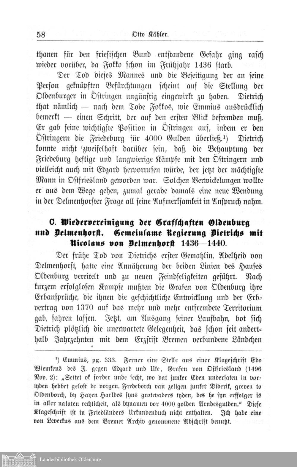 C. Wiedervereinigung der Grafschaften Oldenburg und Delmenhorst. Gemeinsame Regierung...