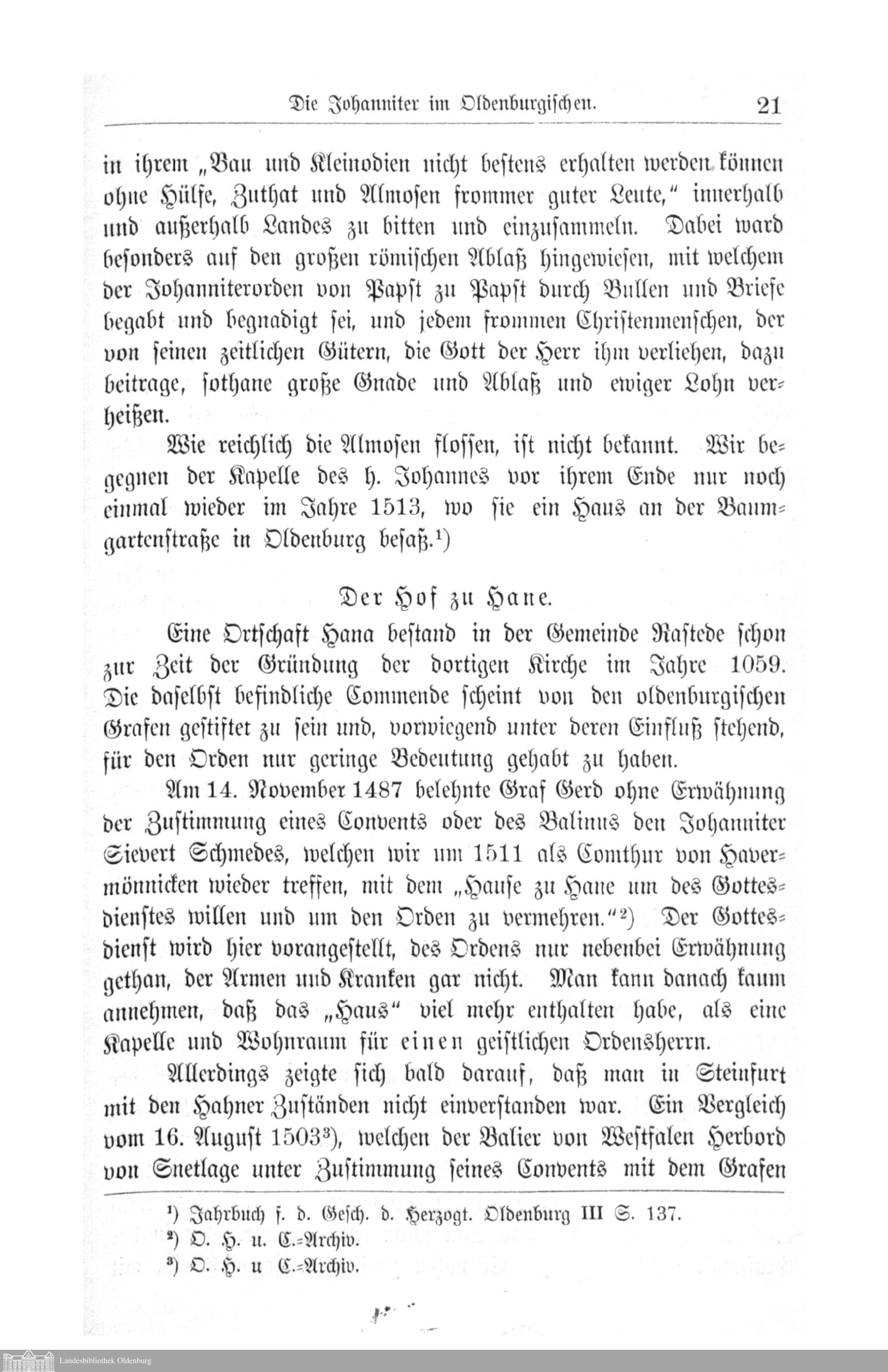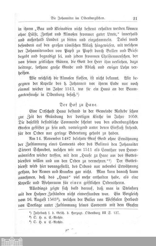 I. Die Johanniter im Oldenburgischen. Von W. Hayen.