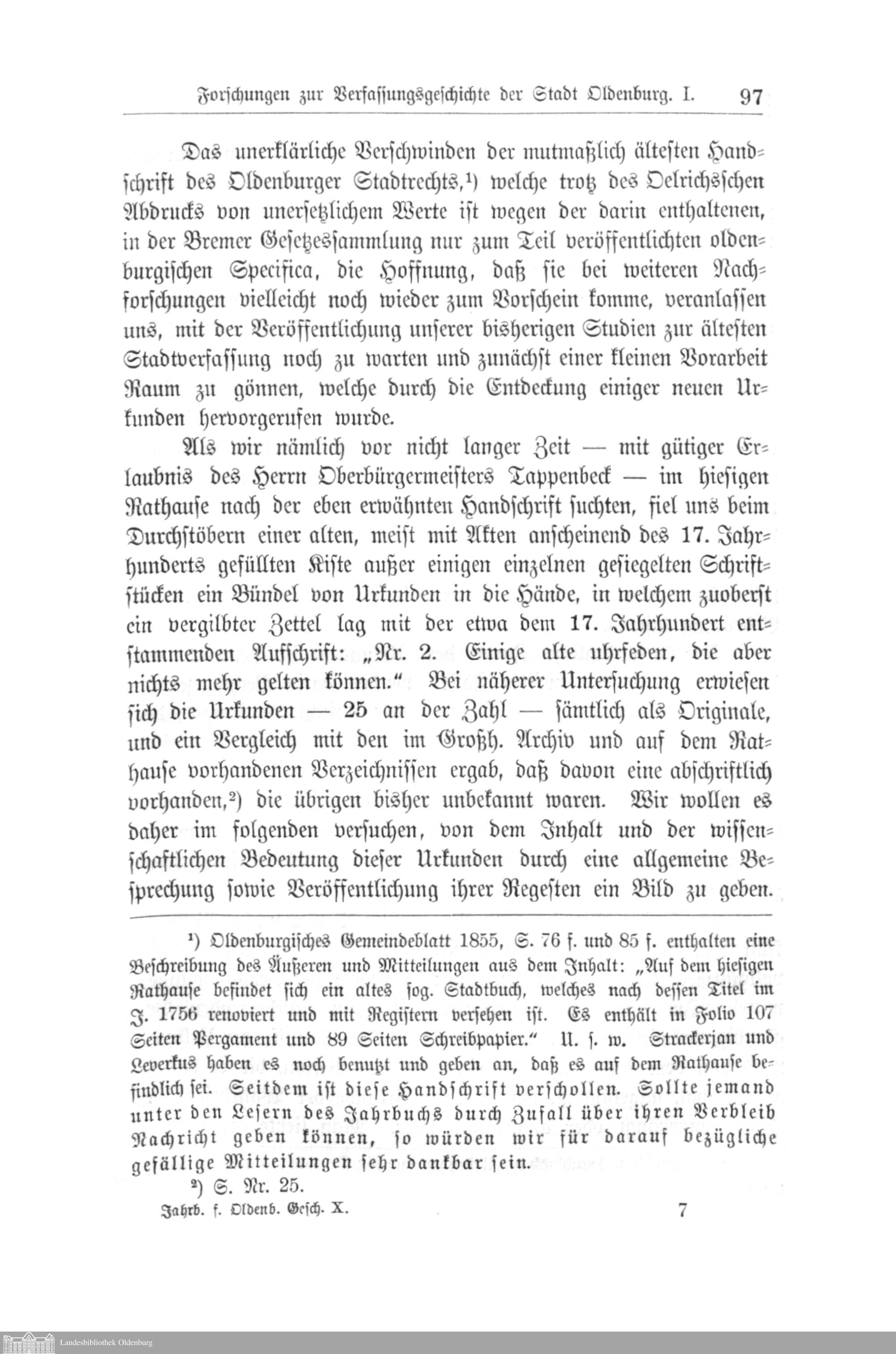 VIII. Forschungen zur Verfassungsgeschichte der Stadt Oldenburg. Von Dietrich Kohl....