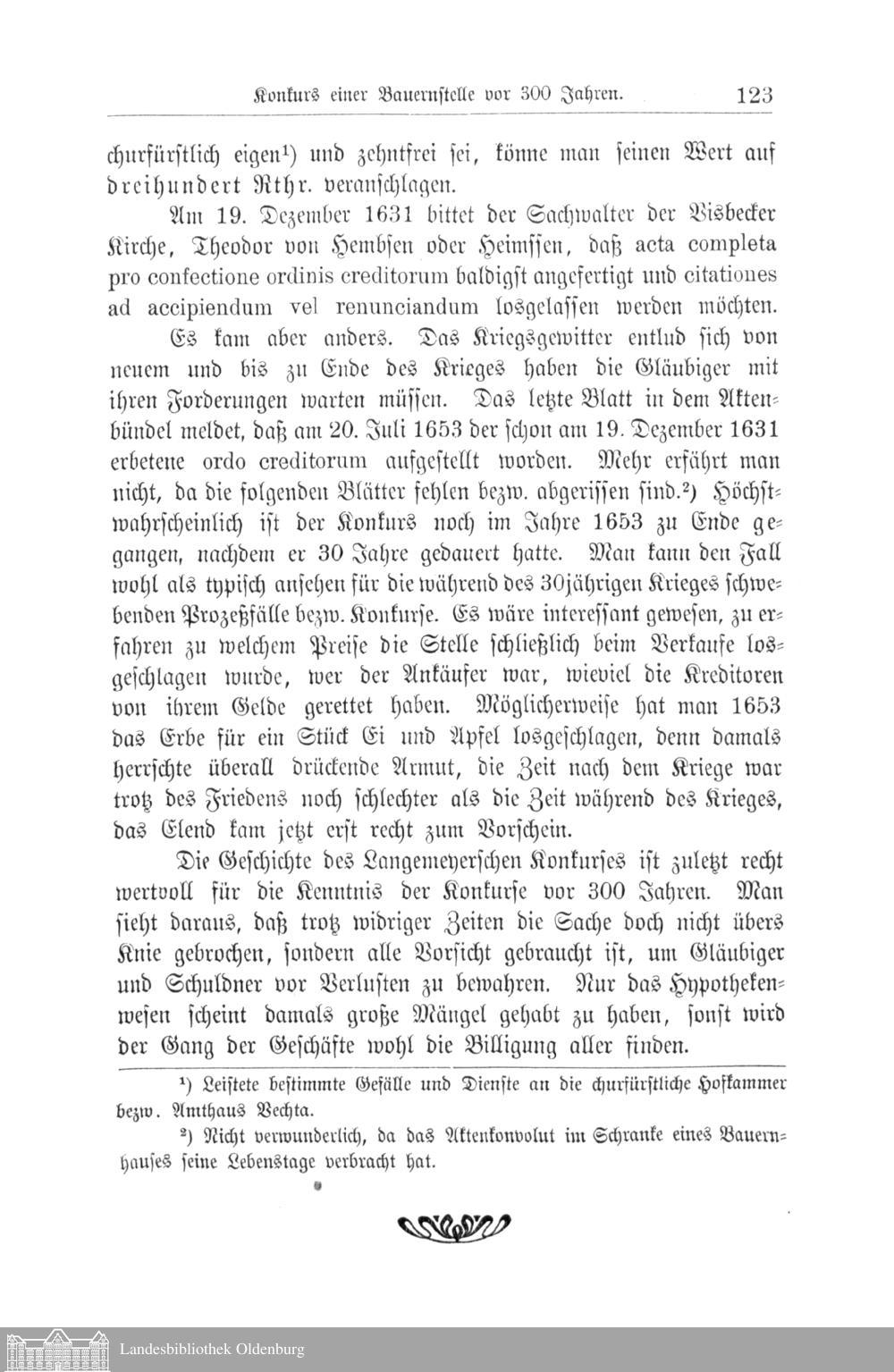 VI. Konkurs einer Bauernstelle (Langemeyer zu Halter, Gem. Visbeck) vor 300 Jahren....