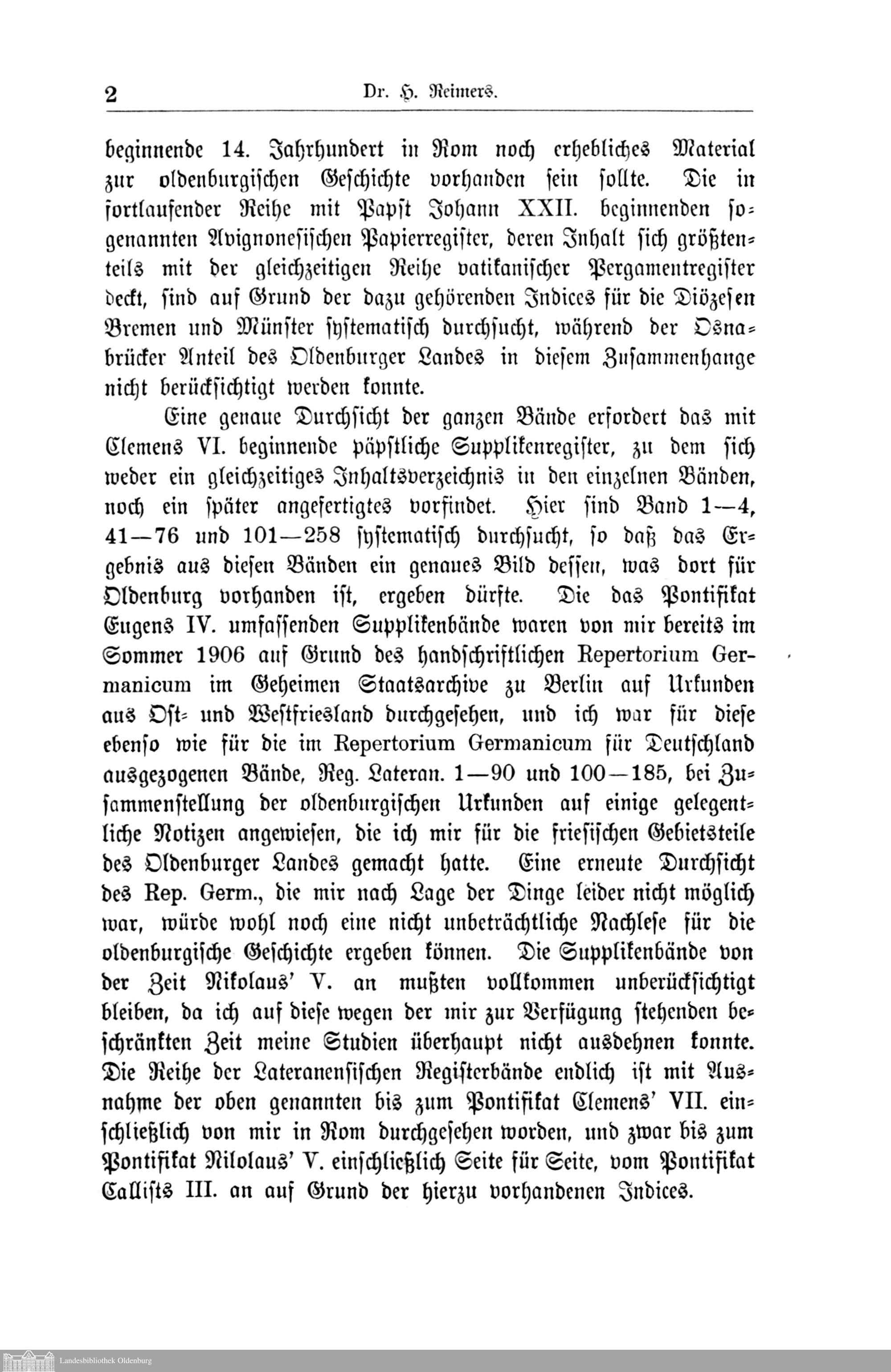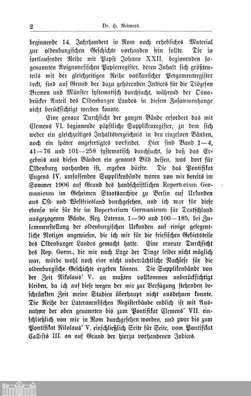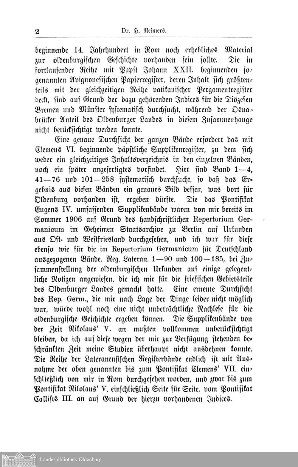 I. Oldenburgische Papsturkunden. Dr. H. Reimers in Aurich.