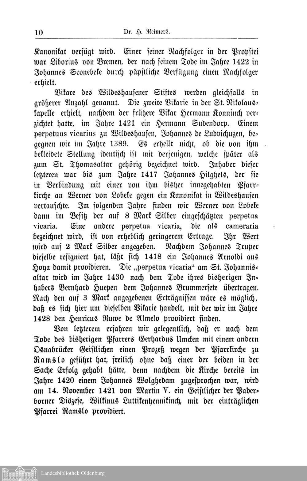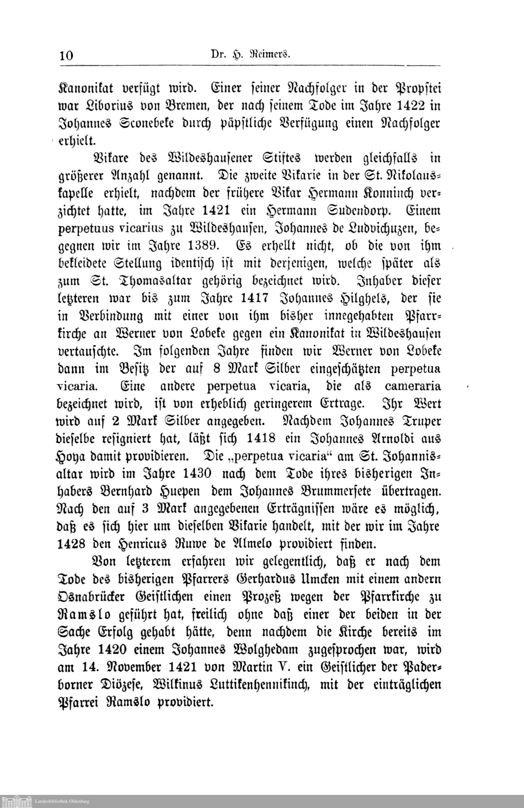 I. Oldenburgische Papsturkunden. Dr. H. Reimers in Aurich.