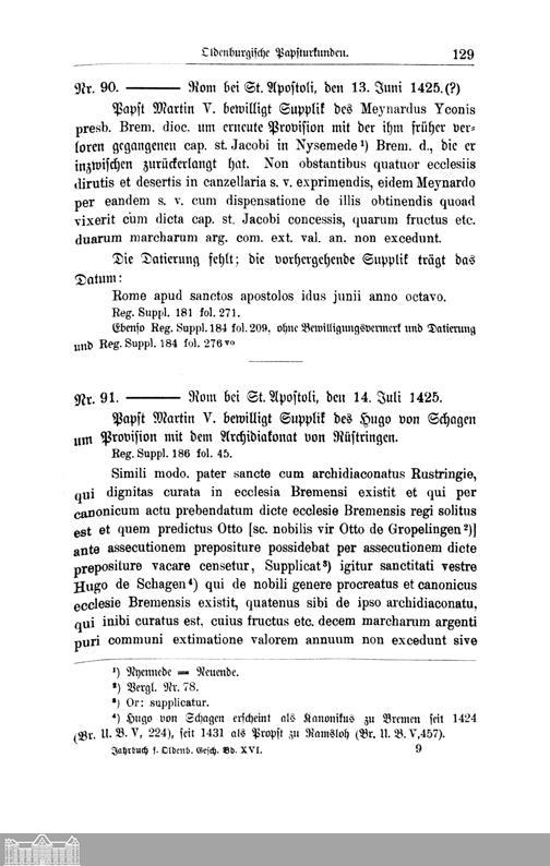 I. Oldenburgische Papsturkunden. Dr. H. Reimers in Aurich.