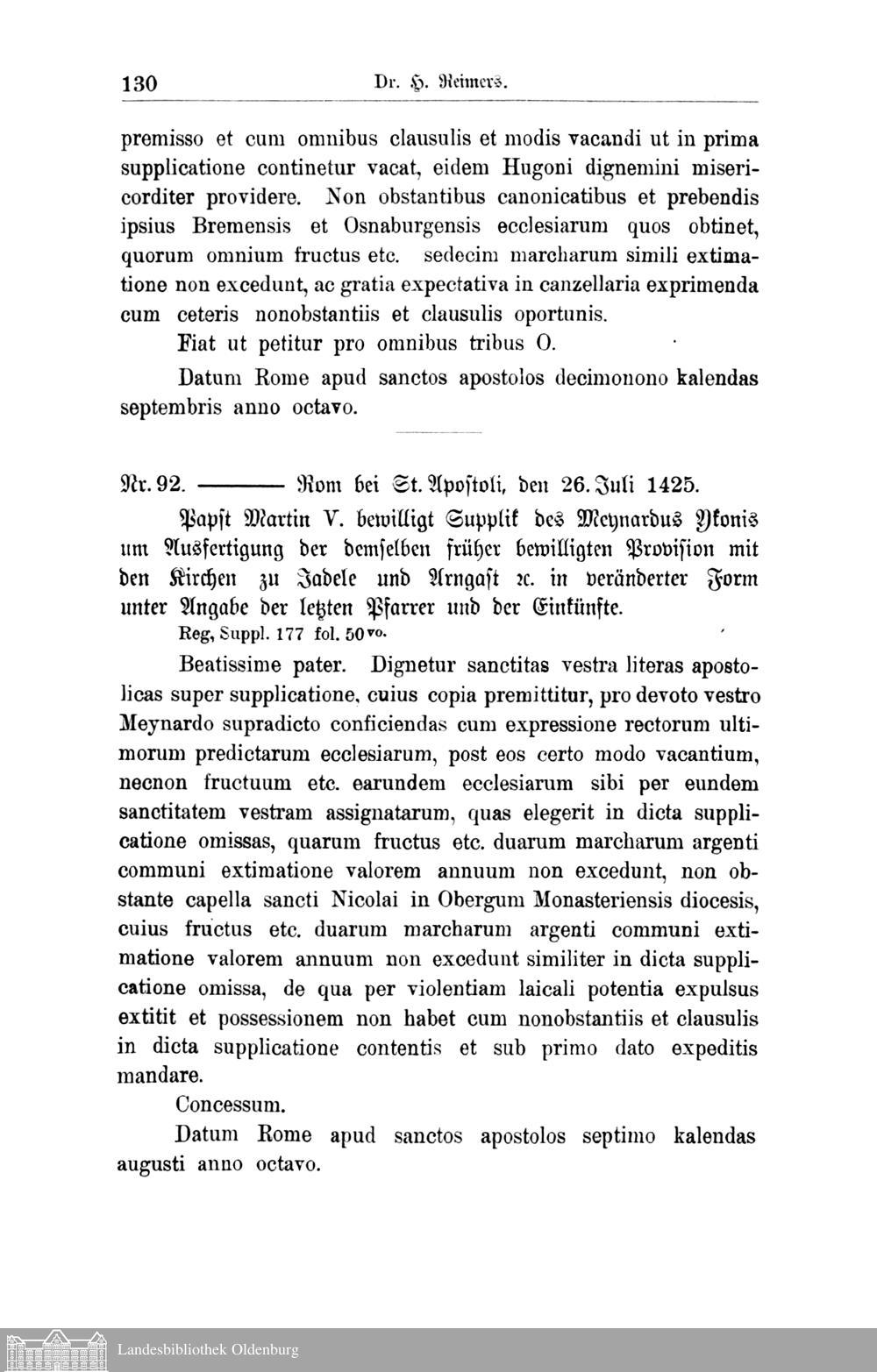 I. Oldenburgische Papsturkunden. Dr. H. Reimers in Aurich.
