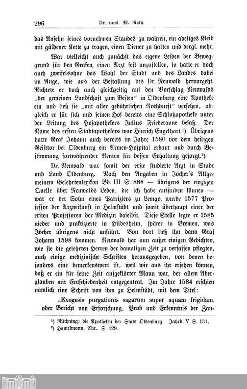 IV. Die Hof- und Leibärzte des letzten oldenburgischen Grafen Johann VII. († 1603)...