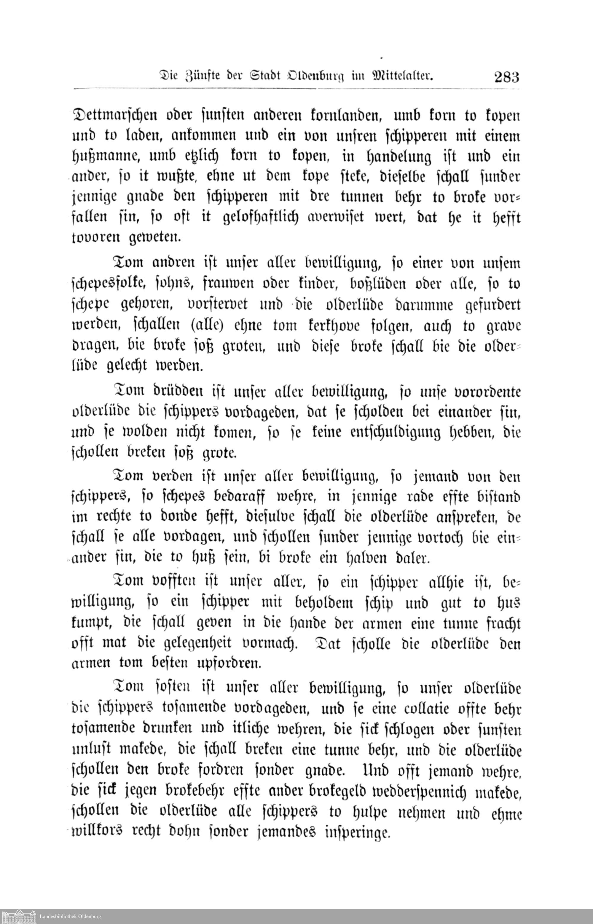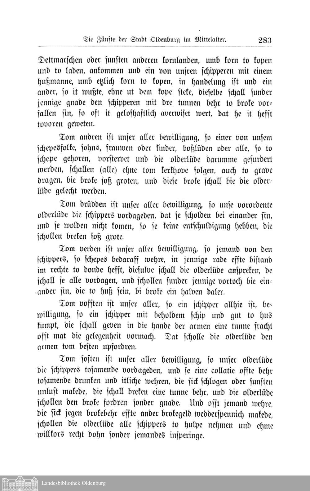 VI. Die Zünfte des Stadt Oldenburg im Mittelalter. Dargestellt nach Urkunden und...