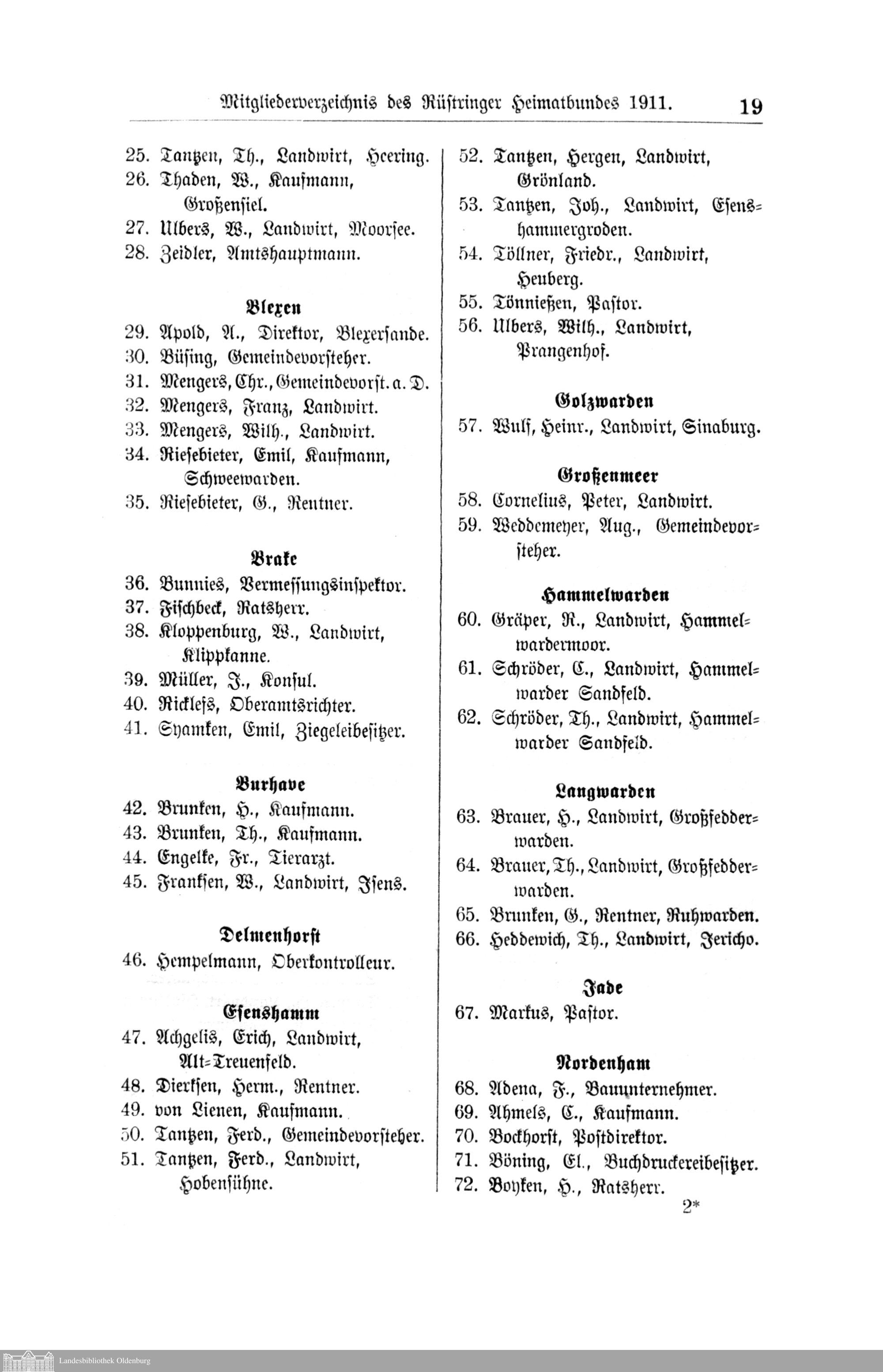 II. Mitglieder-Verzeichnis des Rüstringer Heimnatbundes 1911.