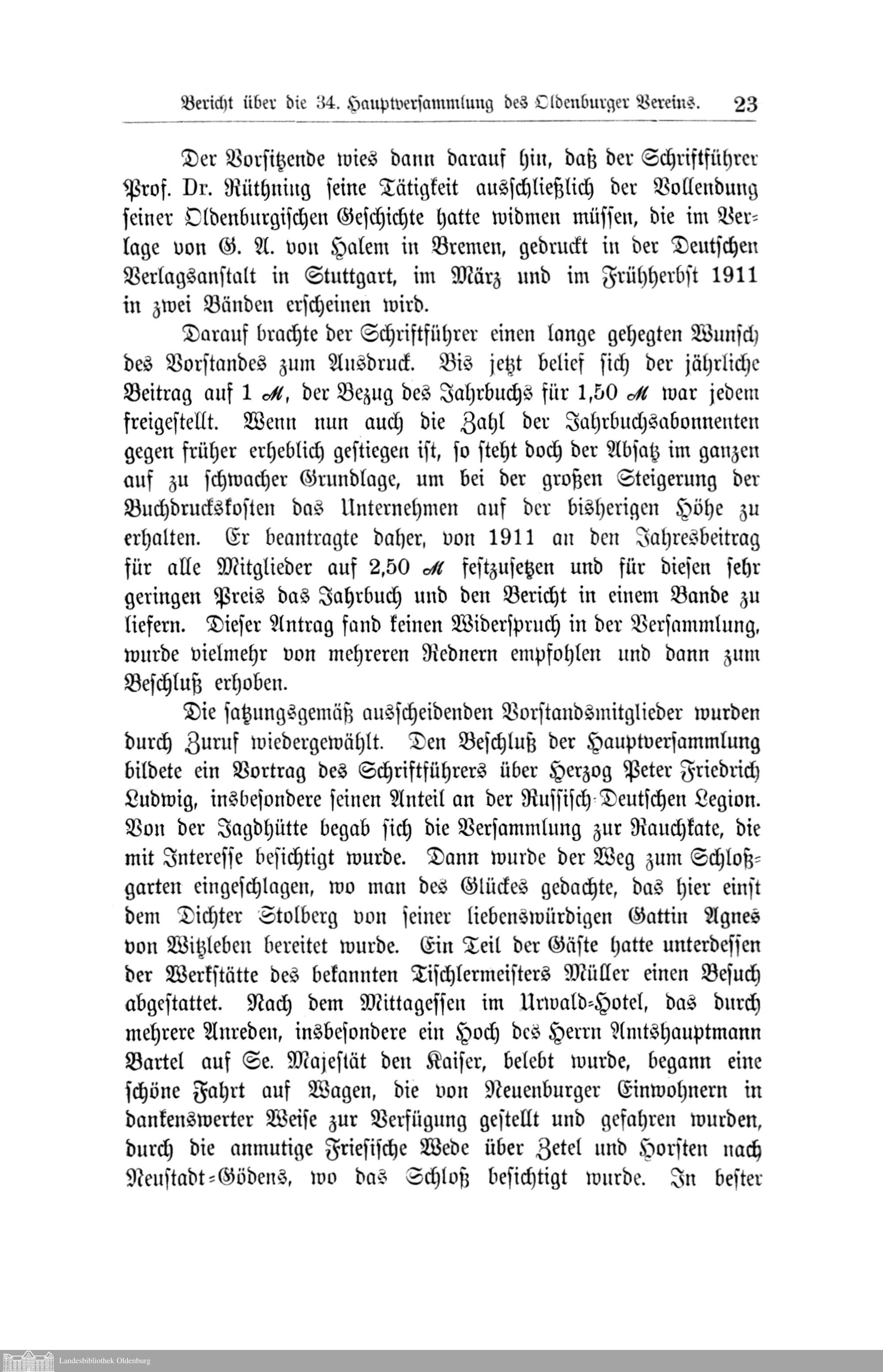 III. Bericht über die 34. Hauptversammlung des Oldenburger Vereins.