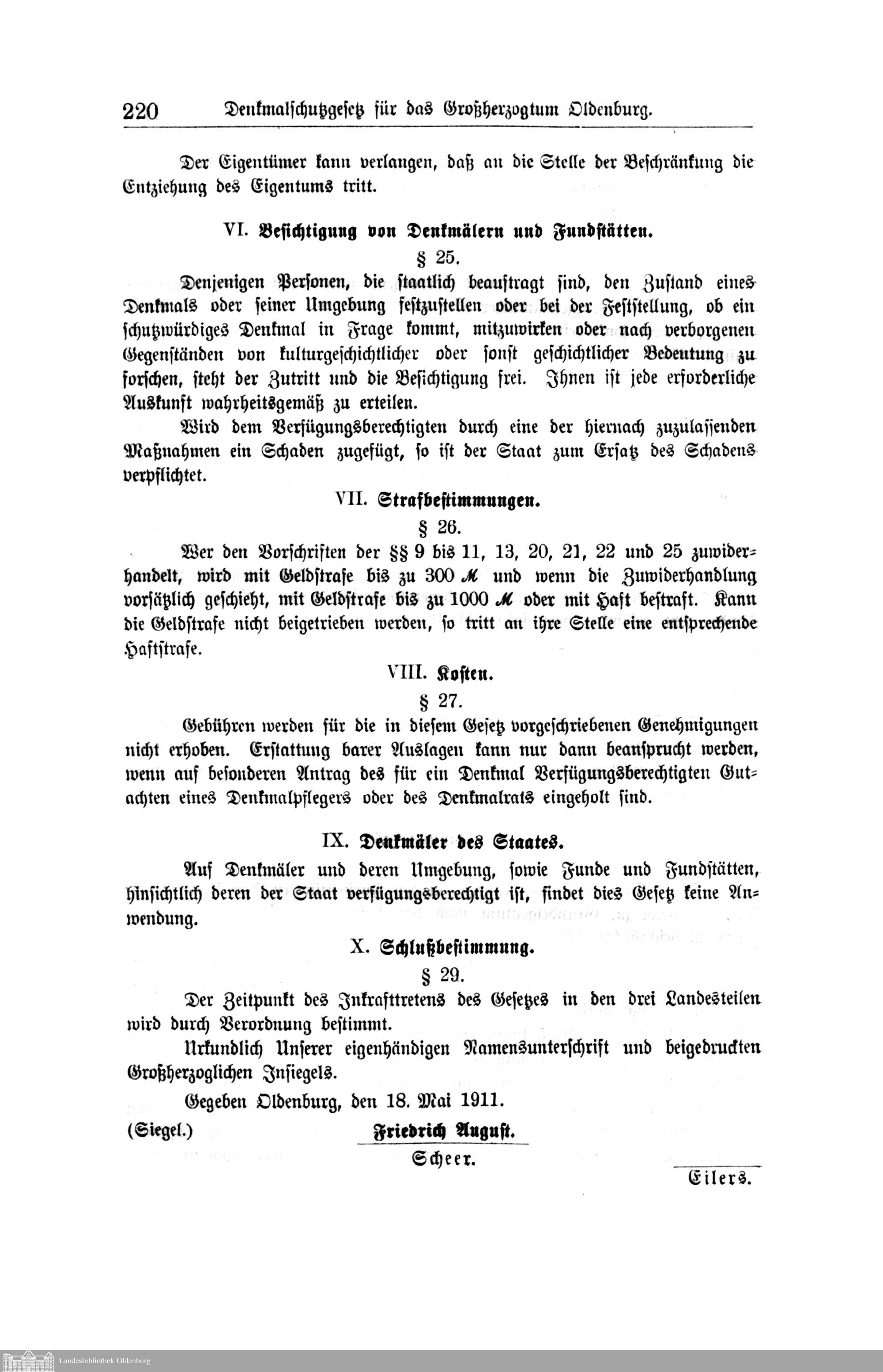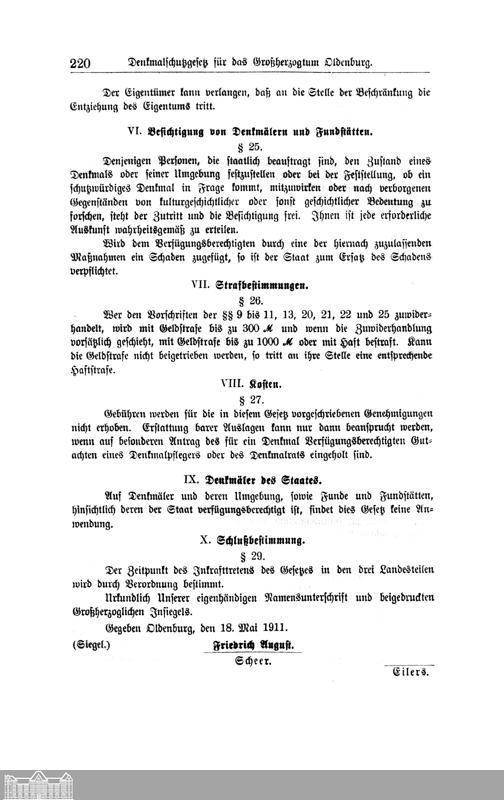 XIV. Denkmalschutzgesetz für das Großherzogtum Oldenburg.