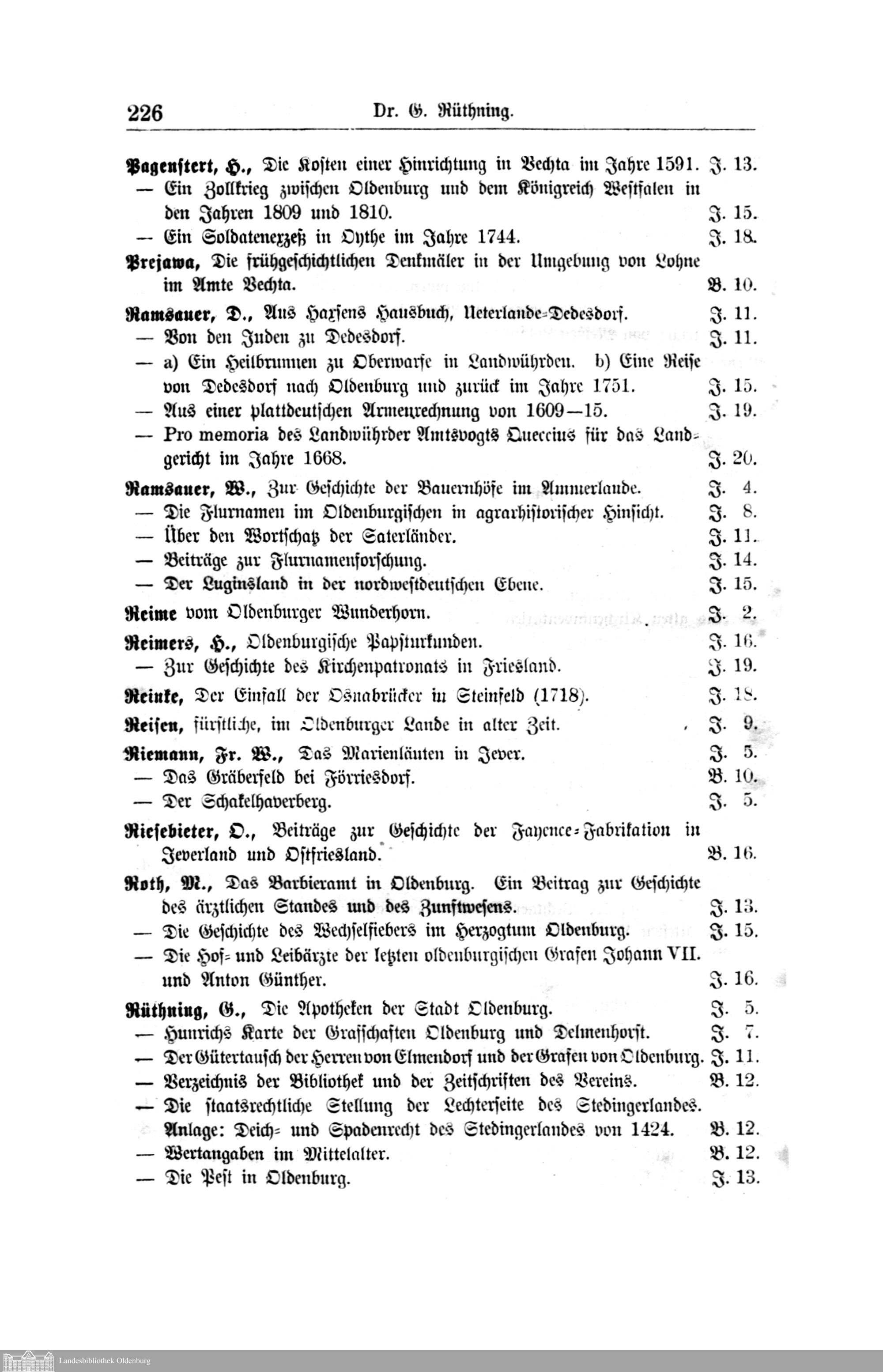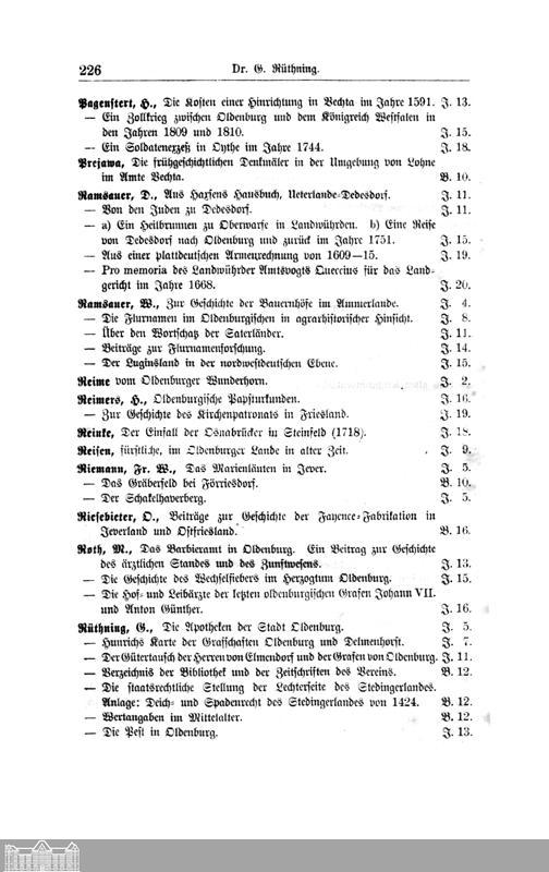 XV. Verzeichnis der Beiträge und Mitteilungen in den Schriften des Oldenburger Vereins...