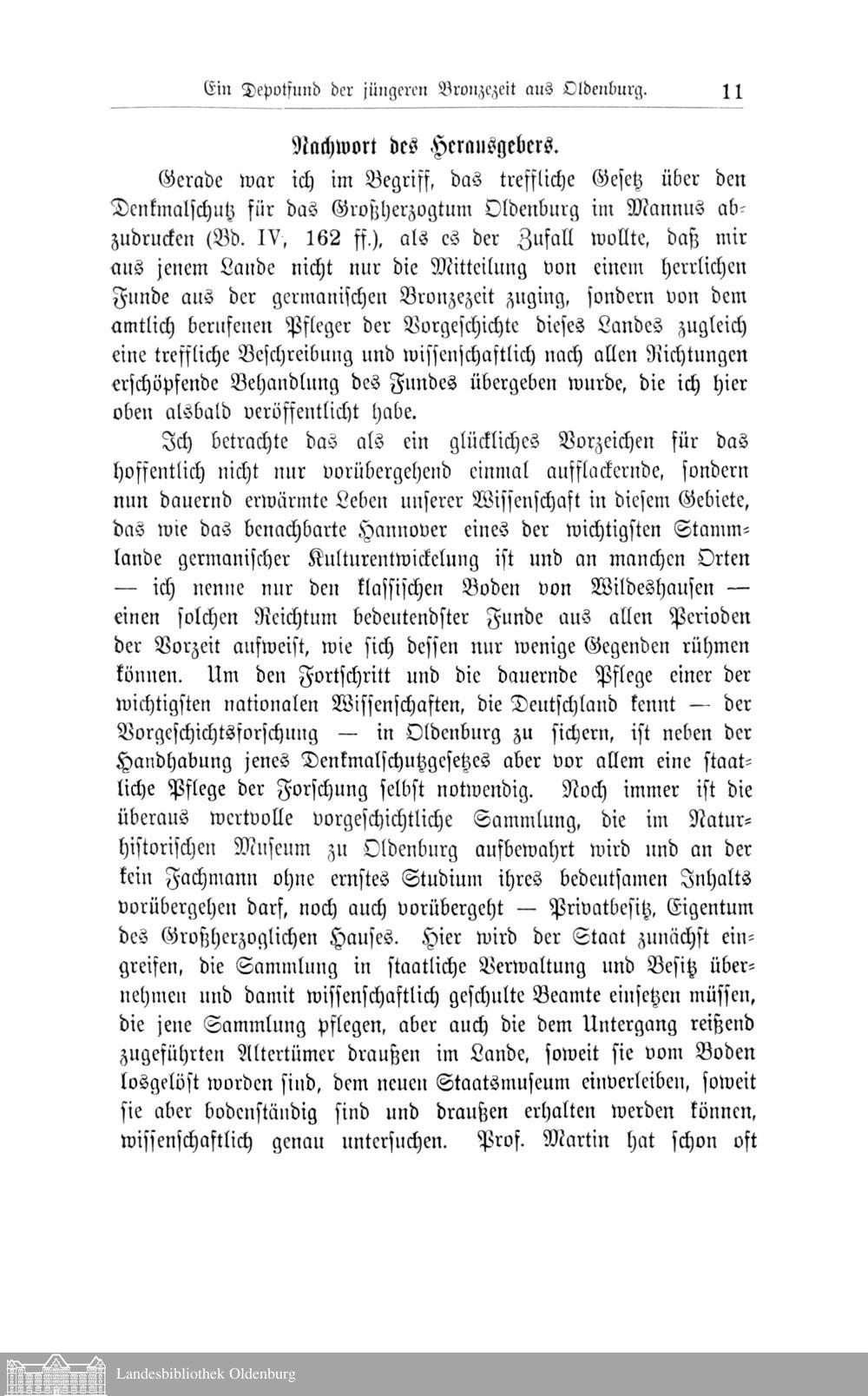 I. Ein Depotfund der jüngeren Bronzezeit aus Oldenburg. Von Museumsdirektor Professor...