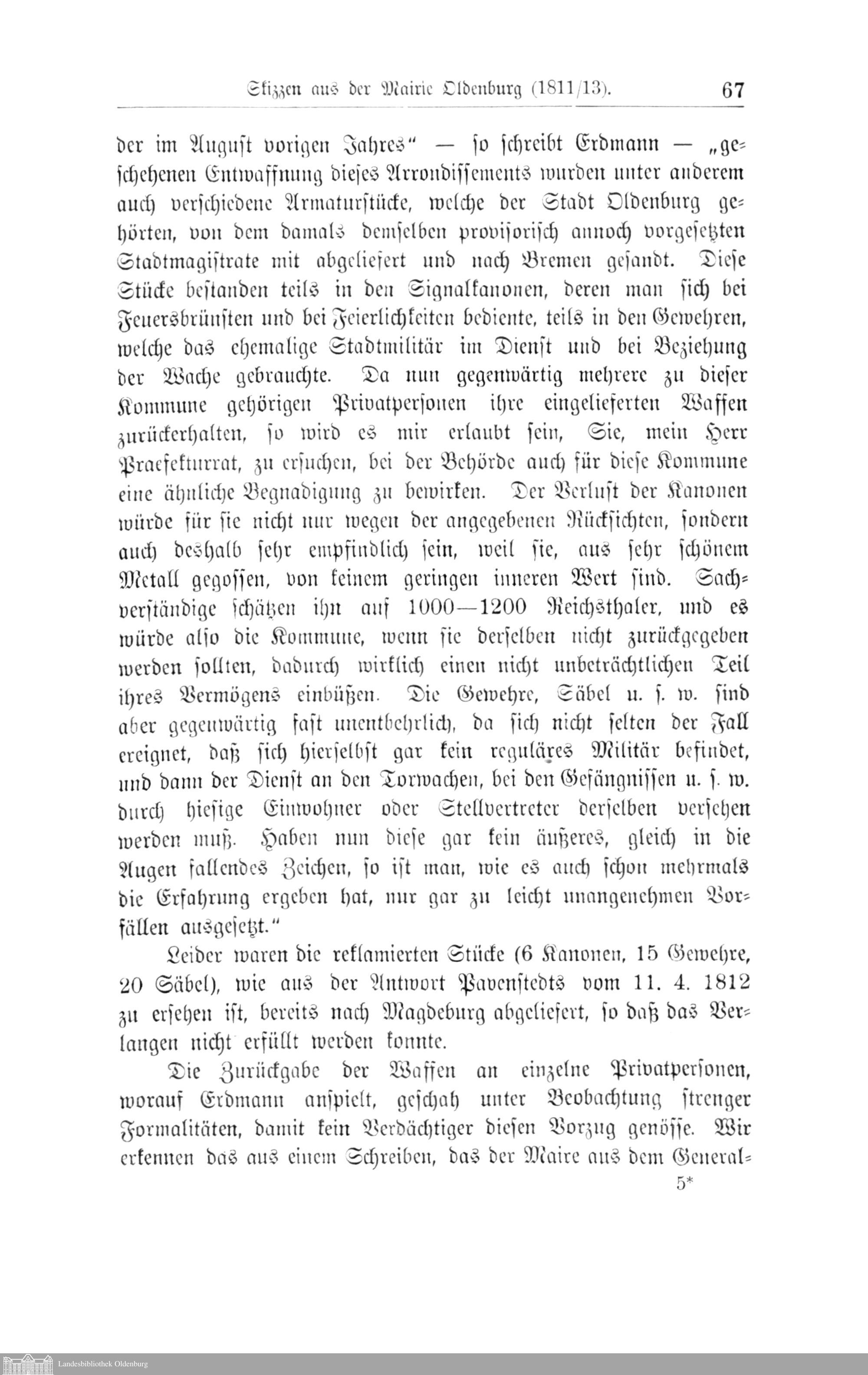 VII. Skizzen aus der Mairie Oldenburg (1811/13). Von Dr. Hugo Ephraim, Oldenburg...