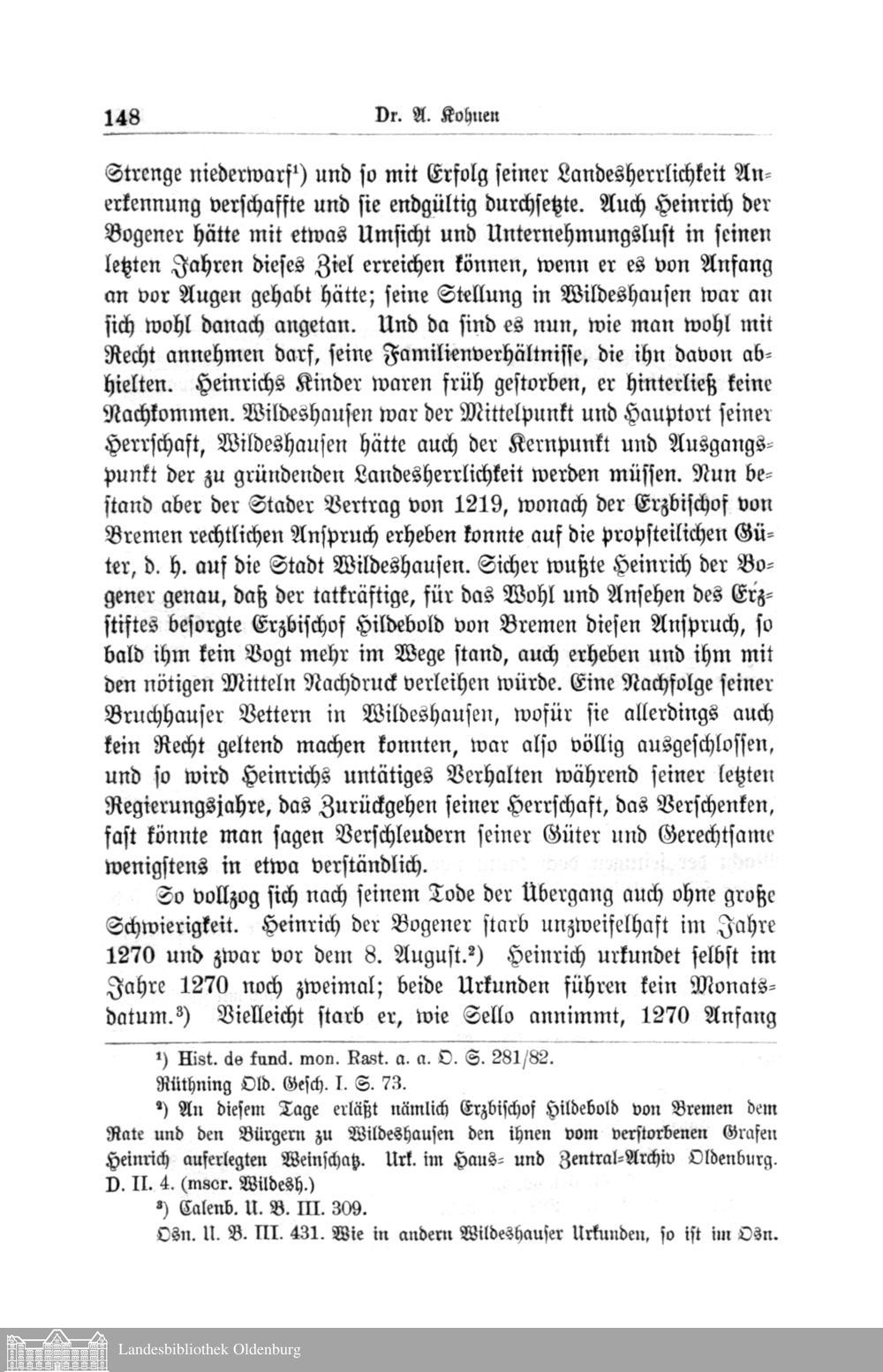 II. Die Grafen von Oldenburg-Wildeshausen. Von Dr. A. Kohnen, Lindern.