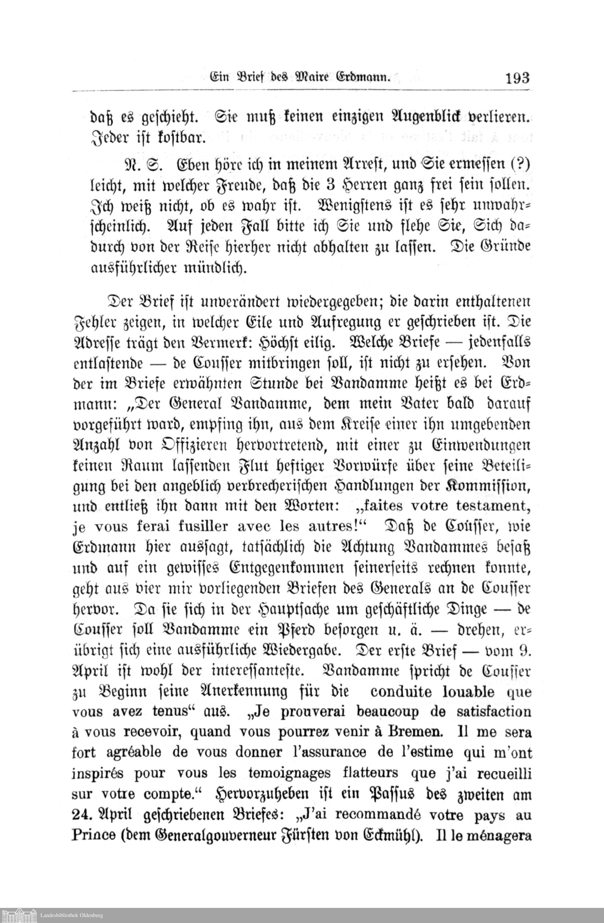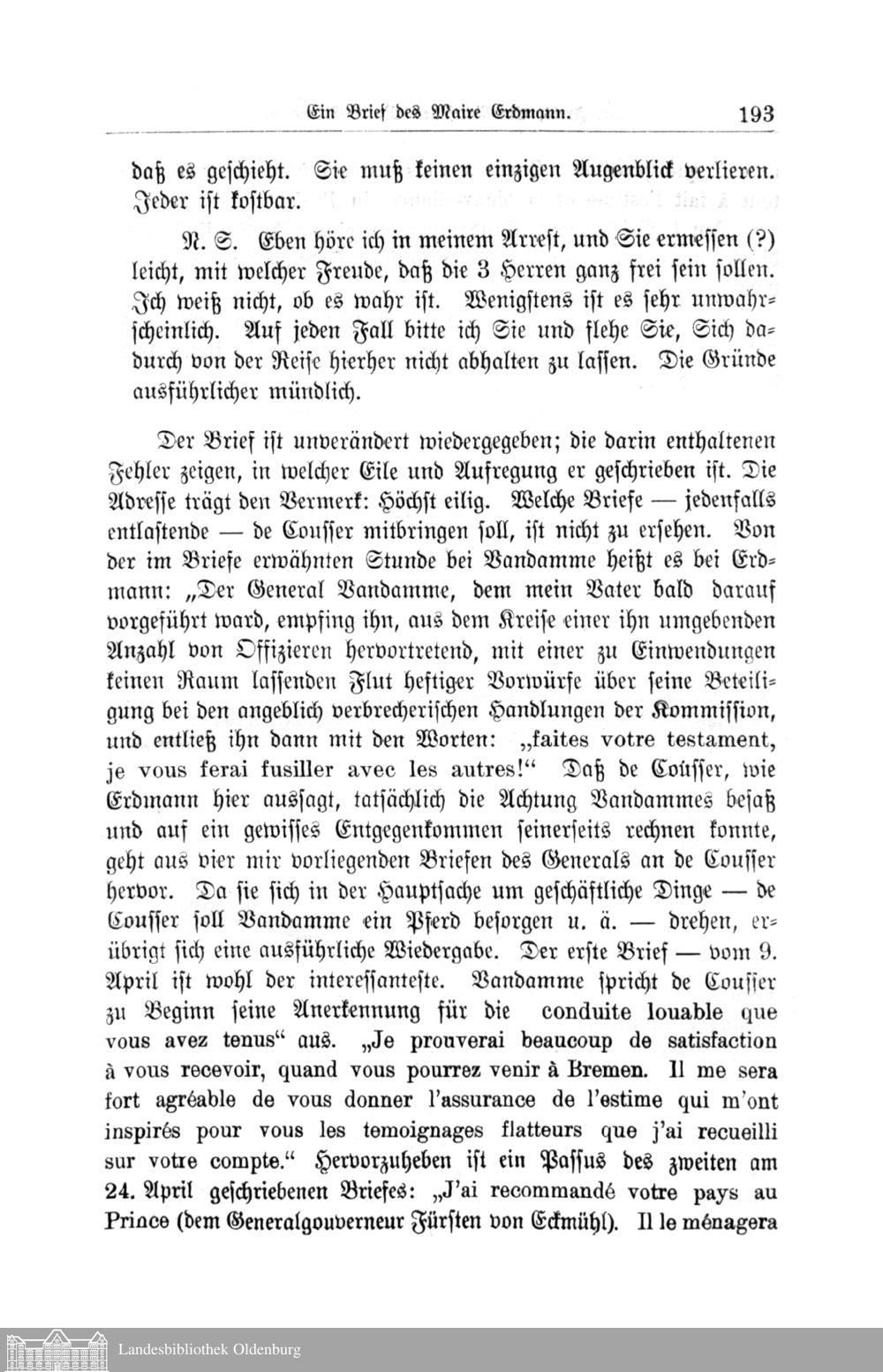 VI. Ein Brief des Maire Erdmann. Von Dr. Frels, Schwerin.
