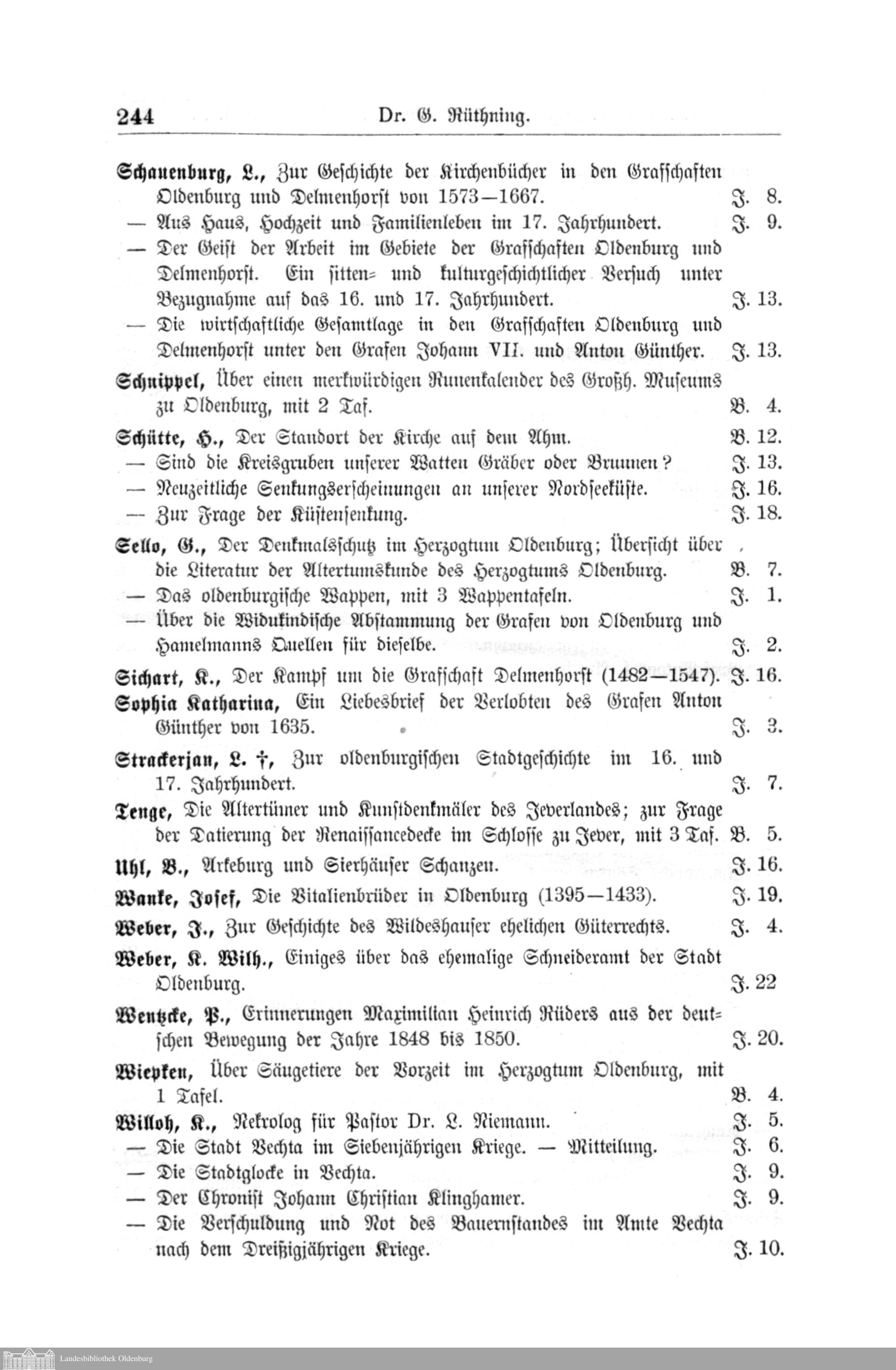 X. Verzeichnis der Beiträge und Mitteilungen in den Schriften des Oldenburger Vereins...