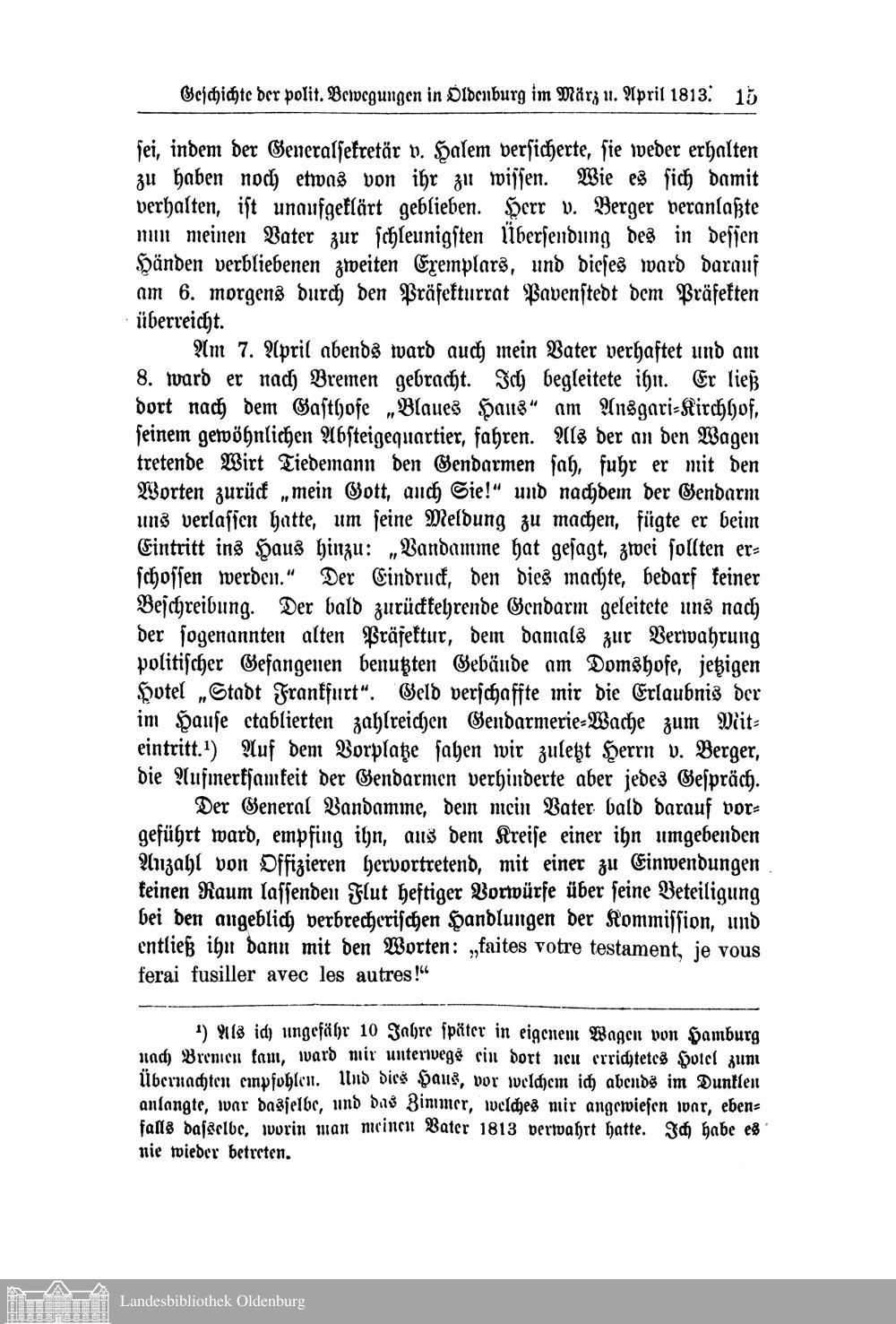 I. Geschichte der politischen Bewegungen in Oldenburg im März und April 1813 und...