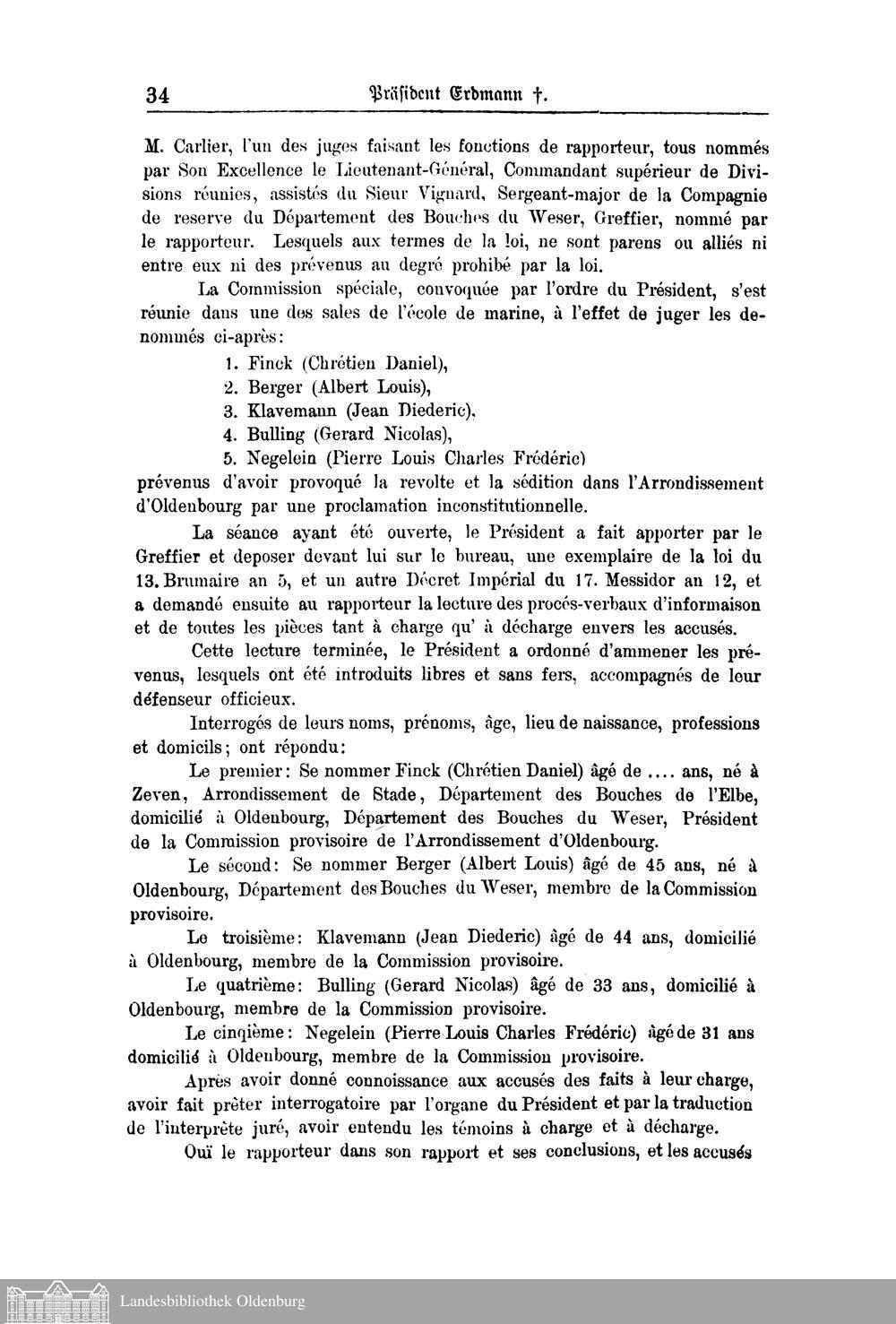 I. Geschichte der politischen Bewegungen in Oldenburg im März und April 1813 und der Prozessierung der provisorischen Administrativ-Kommission sowie des Maire Erdmann.
