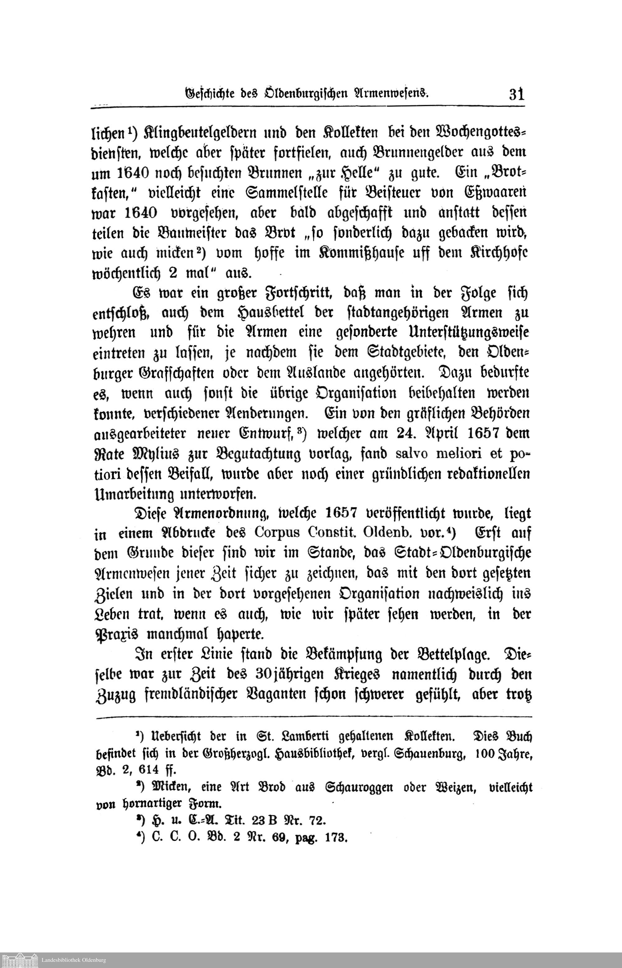 I. Geschichte des Oldenburgischen Armenwesens von der Reformation bis zum Tode Anton...