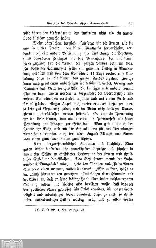 I. Geschichte des Oldenburgischen Armenwesens von der Reformation bis zum Tode Anton...