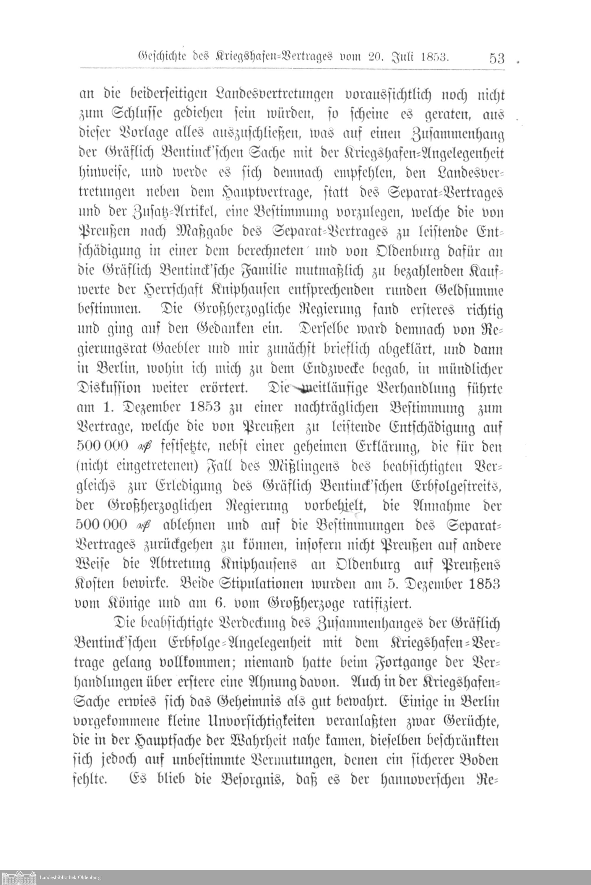 II. Geschichte des Vertrages vom 20. Juli 1853 über die Anlegung eines Kriegshafens...