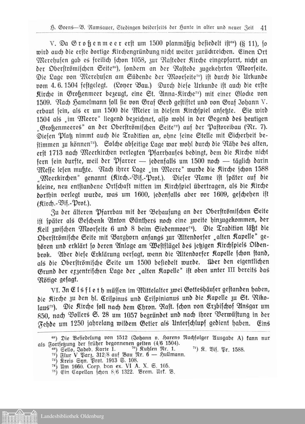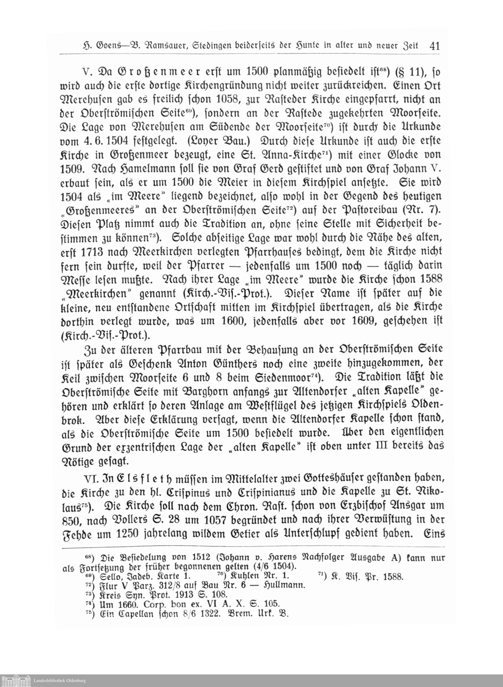 I. Stedingen beiderseits der Hunte in alter und neuer Zeit. Von H. Goens, Geh. Archivrat,...