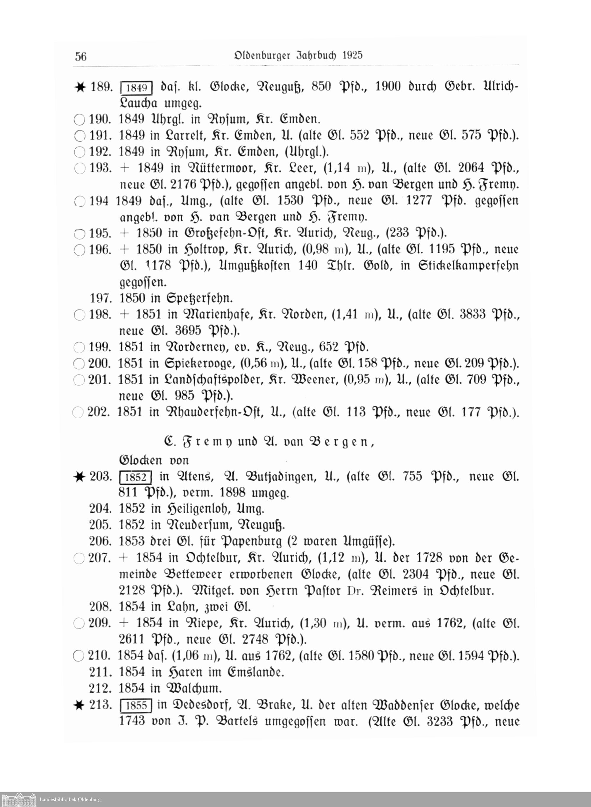 Glockenkunde Oldenburgs. Von A. Rauchheld, Ministerialrat, Oldenburg.