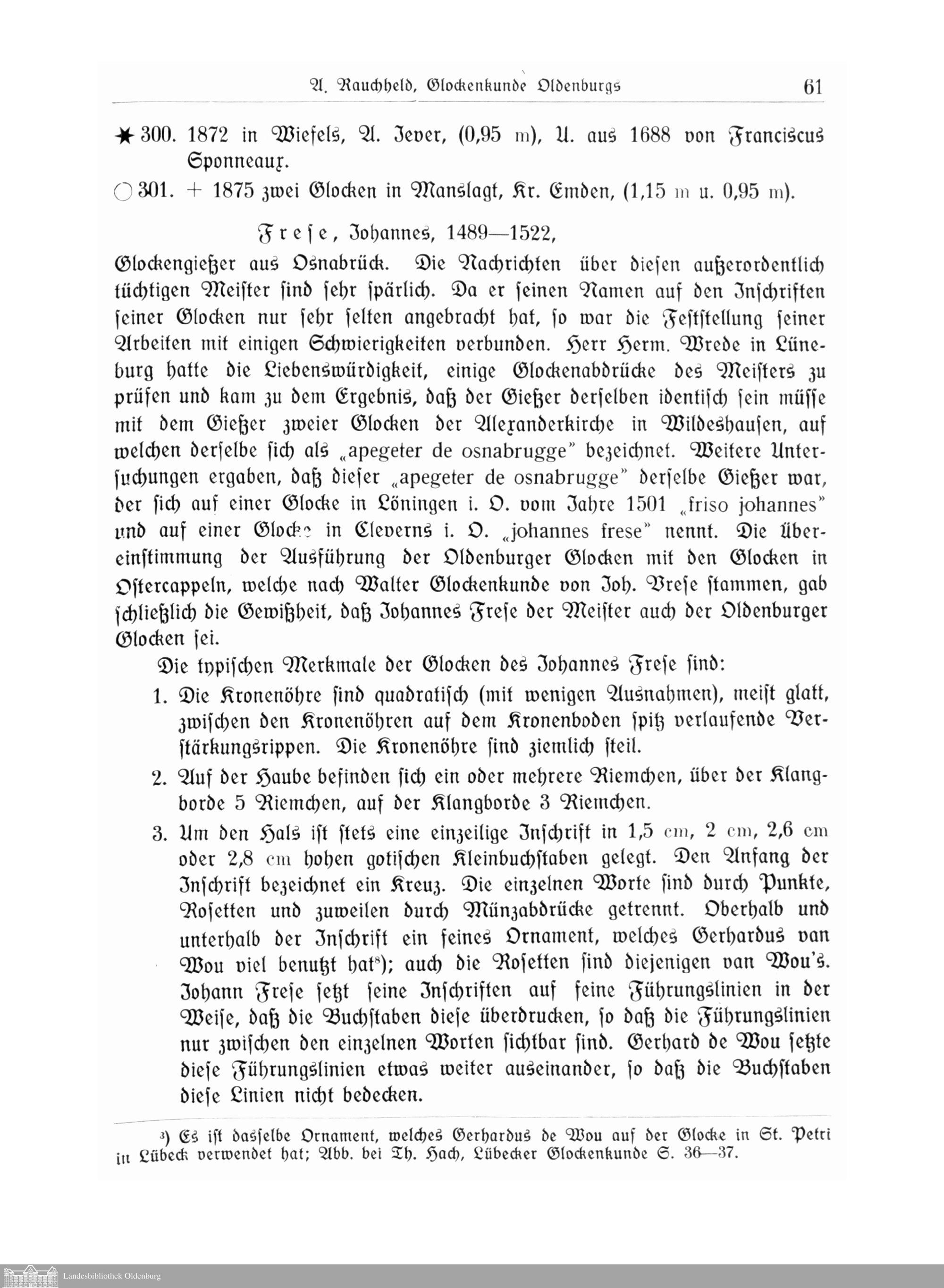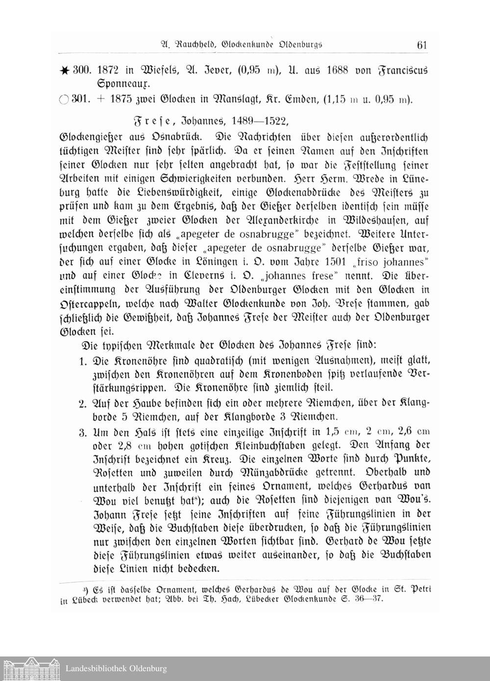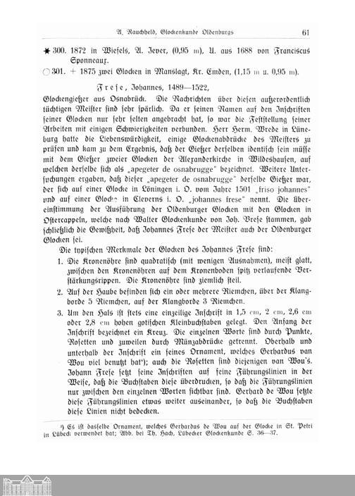 Glockenkunde Oldenburgs. Von A. Rauchheld, Ministerialrat, Oldenburg.