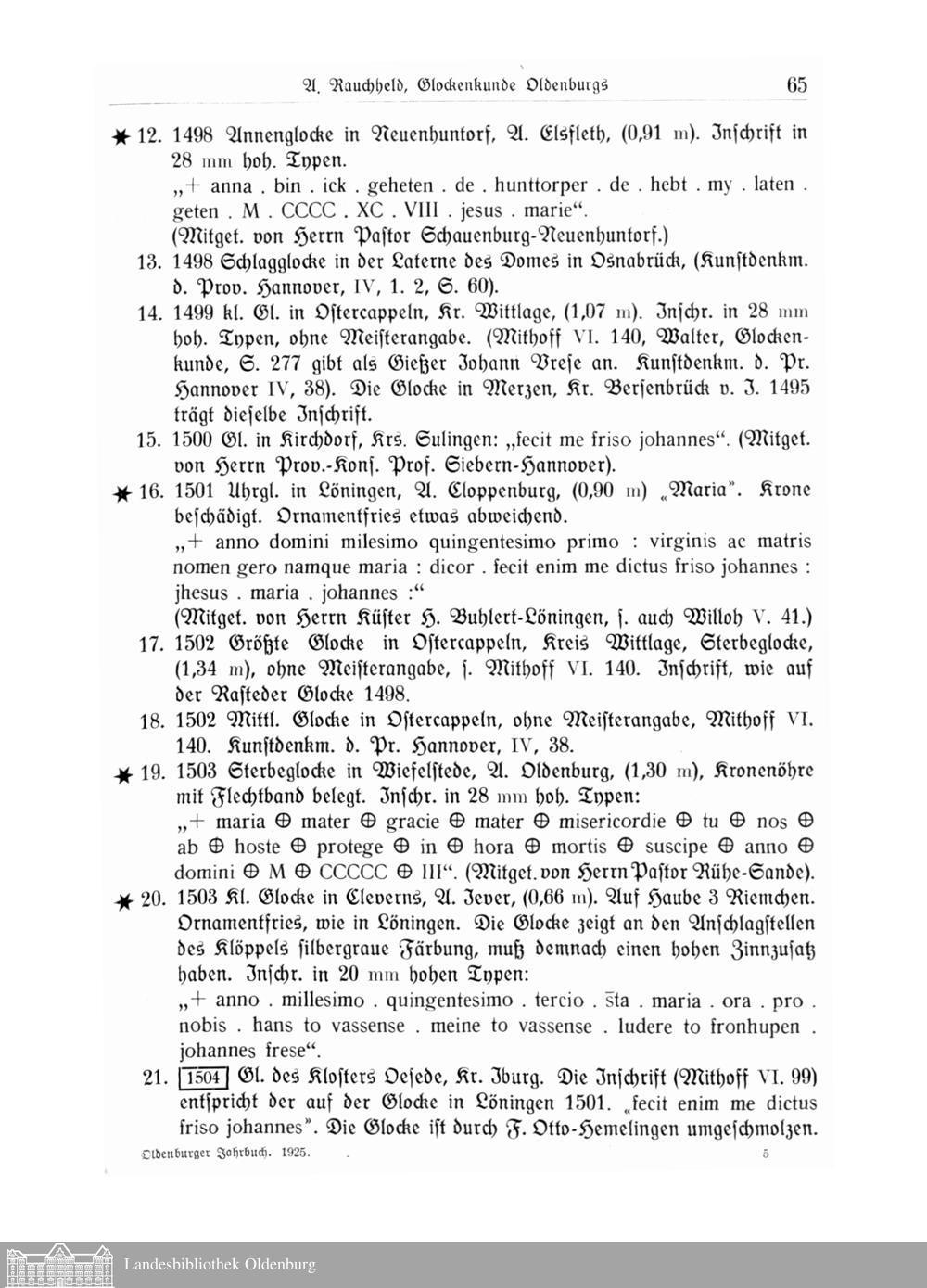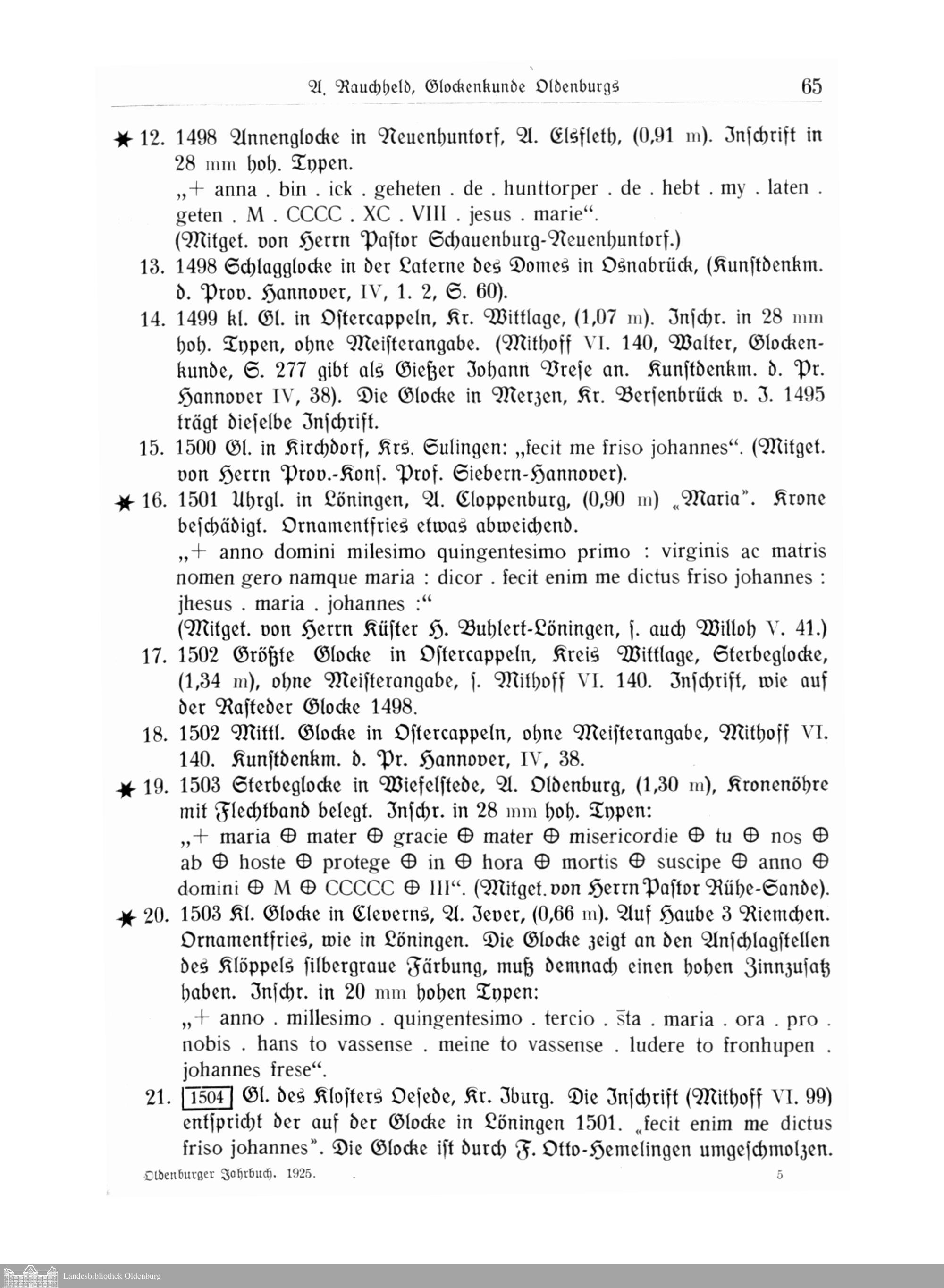 Glockenkunde Oldenburgs. Von A. Rauchheld, Ministerialrat, Oldenburg.