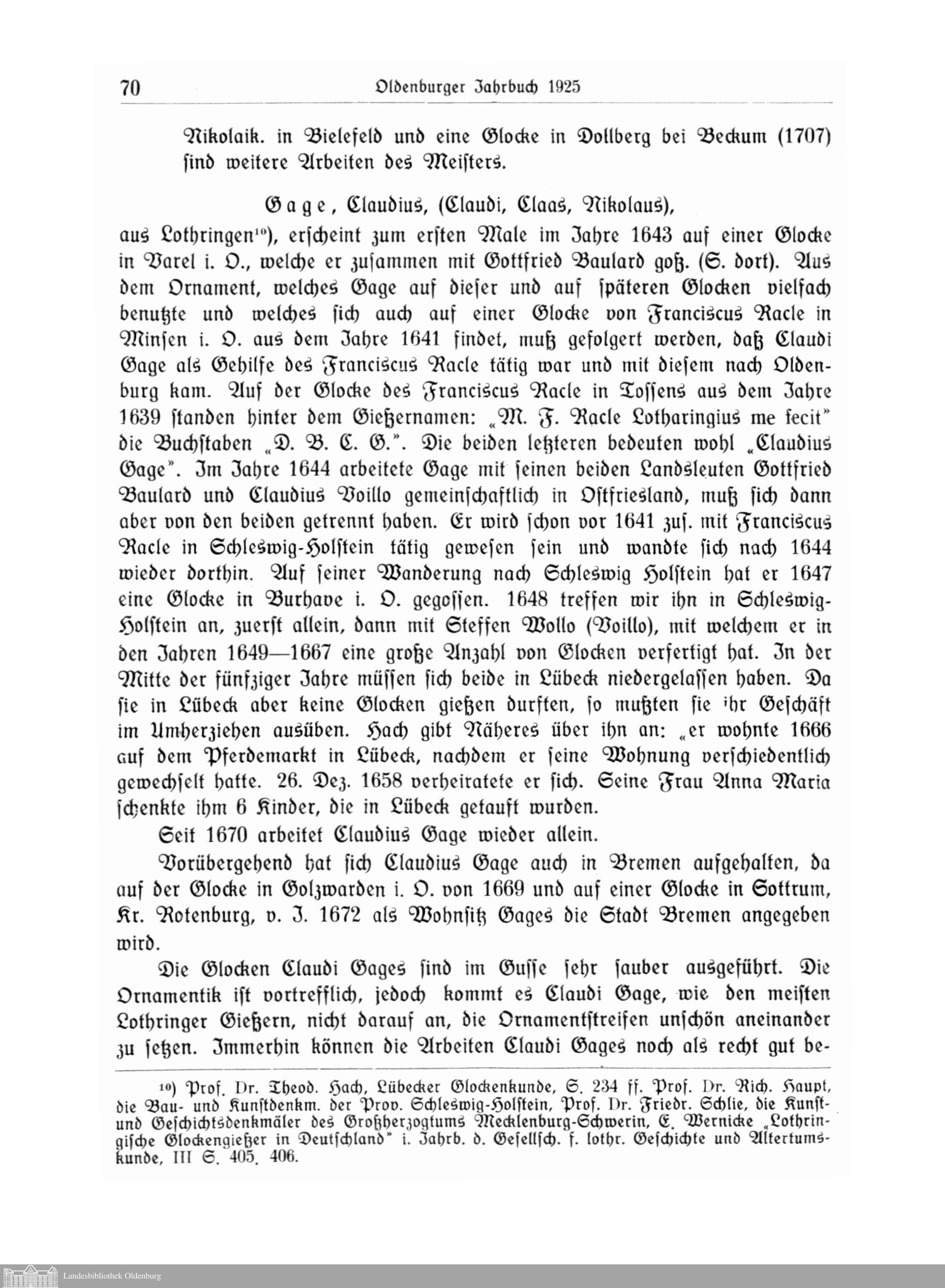 Glockenkunde Oldenburgs. Von A. Rauchheld, Ministerialrat, Oldenburg.