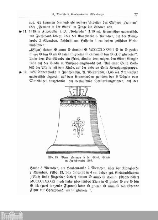 Glockenkunde Oldenburgs. Von A. Rauchheld, Ministerialrat, Oldenburg.